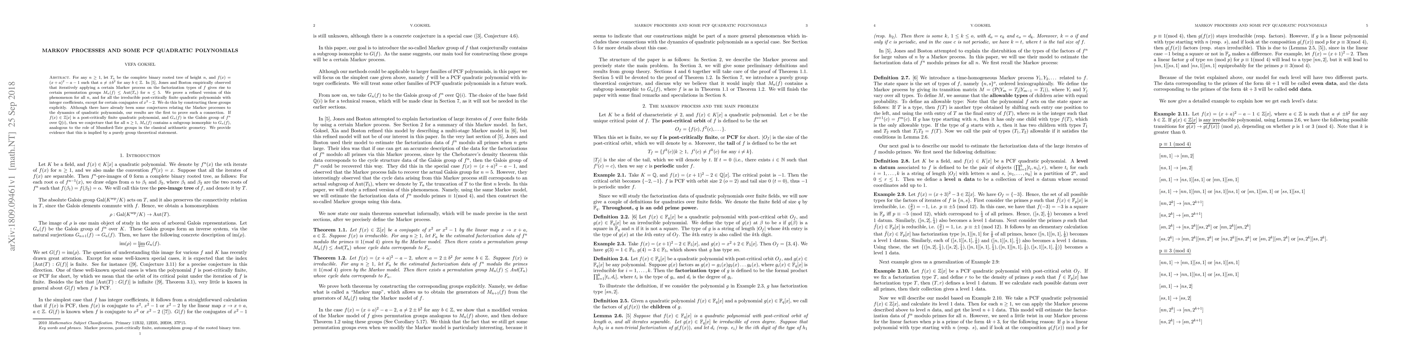 This paper proves a connection between Markov processes and quadratic polynomials, showing that certain permutation groups can be generated from the Galois group of iterated polynomials.