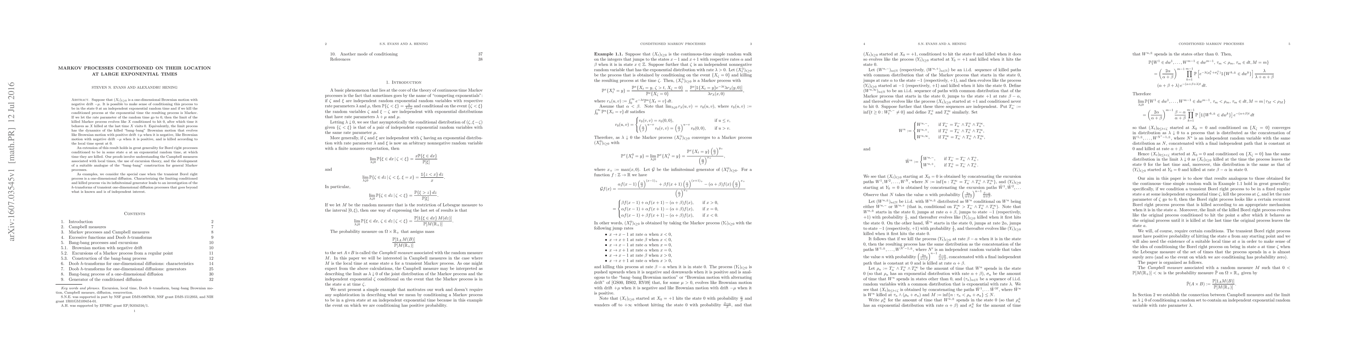 This paper explores the behavior of Markov processes conditioned on their location at large exponential times, demonstrating that such processes can be killed at exponential random times and exhibit "bang-bang" dynamics. The study extends to general Markov processes and involves advanced techniques like Campbell measures and excursion theory.
