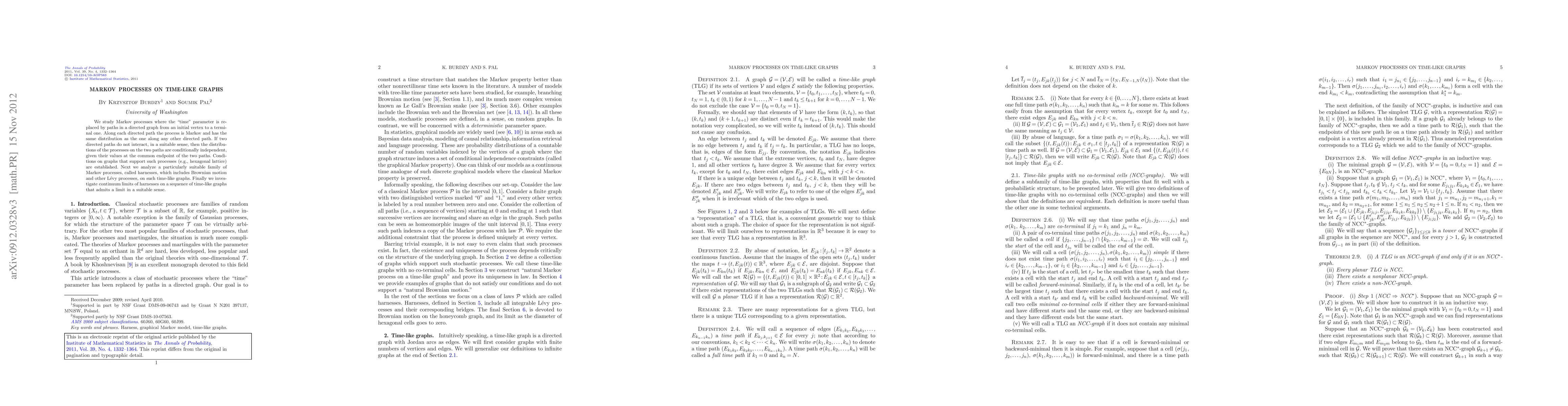 We study Markov processes where the "time" parameter is replaced by paths in a directed graph from an initial vertex to a terminal one. Along each directed path the process is Markov and has the same distribution as the one along any other directed path. If two directed paths do not interact, in a suitable sense, then the distributions of the processes on the two paths are conditionally independent, given their values at the common endpoint of the two paths. Conditions on graphs that support such processes (e.g., hexagonal lattice) are established. Next we analyze a particularly suitable family of Markov processes, called harnesses, which includes Brownian motion and other L\'{e}vy processes, on such time-like graphs. Finally we investigate continuum limits of harnesses on a sequence of time-like graphs that admits a limit in a suitable sense.