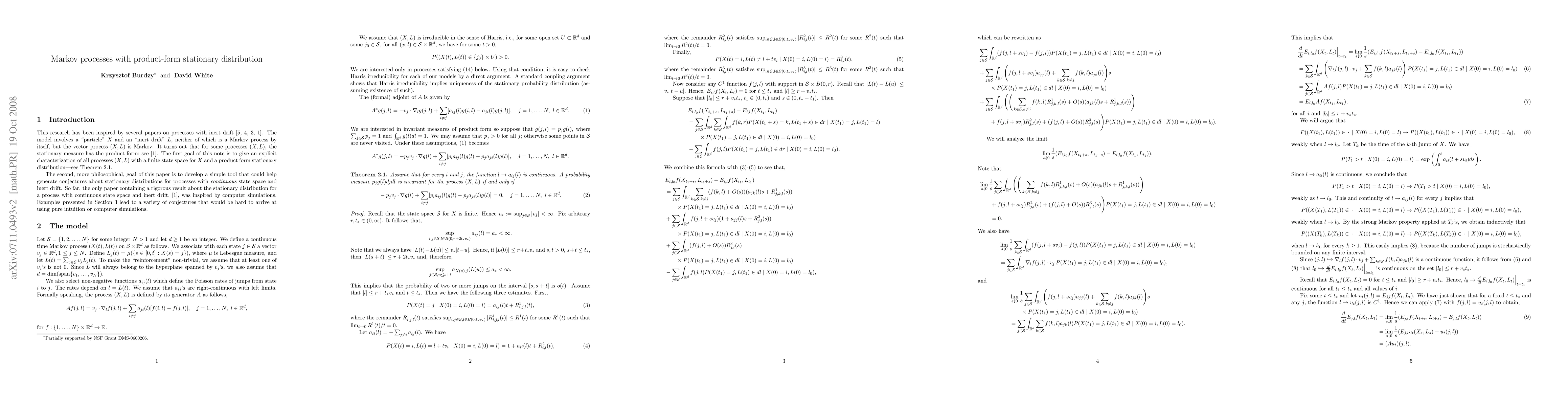 Researchers studied Markov processes with product-form stationary distributions to generate conjectures for diffusions with inert drift, providing new insights into the behavior of such systems.