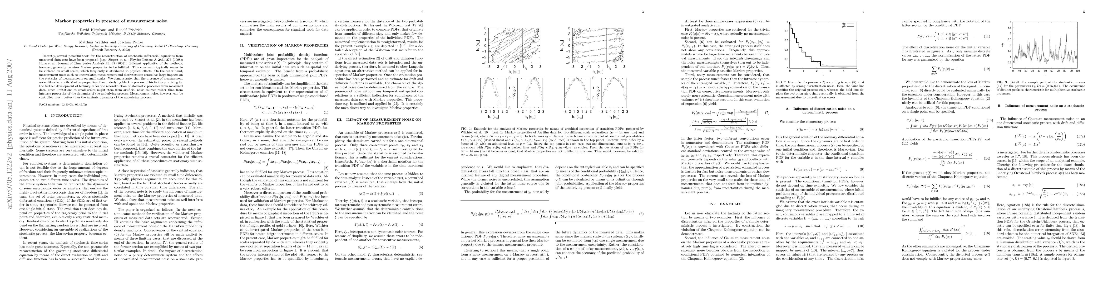 Recently, several powerful tools for the reconstruction of stochastic differential equations from measured data sets have been proposed [e.g. Siegert et al., Physics Letters A 243, 275 (1998); Hurn et al., Journal of Time Series Analysis 24, 45 (2003)]. Efficient application of the methods, however, generally requires Markov properties to be fulfilled. This constraint typically seems to be violated on small scales, which frequently is attributed to physical effects. On the other hand, measurement noise such as uncorrelated measurement and discretization errors has large impacts on the statistics of measurements on small scales. We demonstrate, that the presence of measurement noise, likewise, spoils Markov properties of an underlying Markov processes. This fact is promising for the further development of techniques for the reconstruction of stochastic processes from measured data, since limitations at small scales might stem from artificial noise sources rather than from intrinsic properties of the dynamics of the underlying process. Measurement noise, however, can be controlled much better than the intrinsic dynamics of the underlying process.