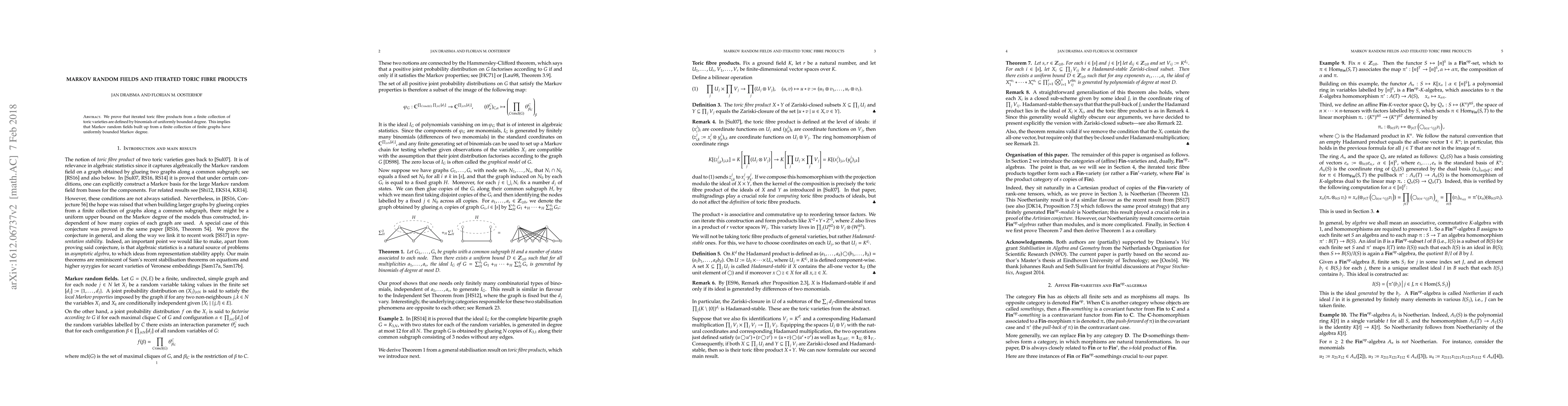 Researchers prove that iterated toric fibre products from finitely many toric varieties result in Markov random fields with uniformly bounded degree, implying a limit on their complexity.
