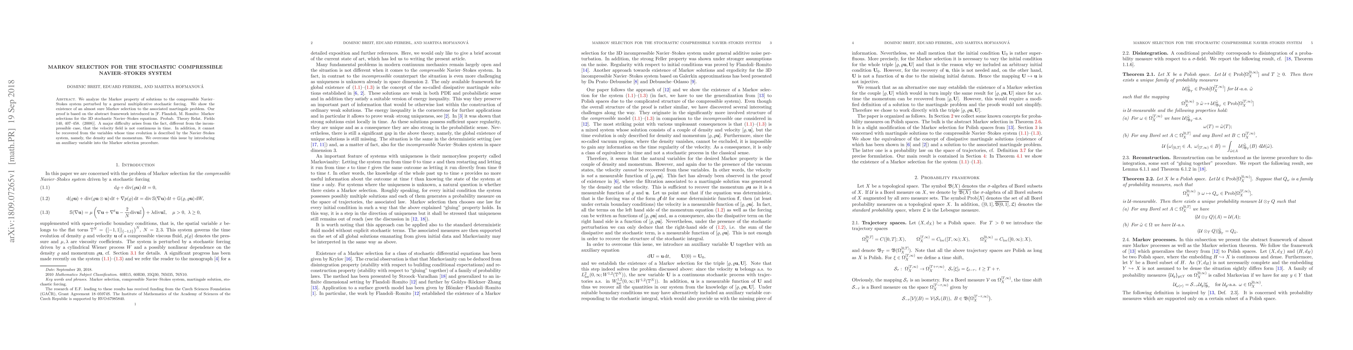 This paper investigates the Markov property of solutions to the stochastic compressible Navier--Stokes system, demonstrating the existence of an almost sure Markov selection for the associated martingale problem. The authors address the challenge of non-continuous velocity fields by introducing an auxiliary variable in the Markov selection process.