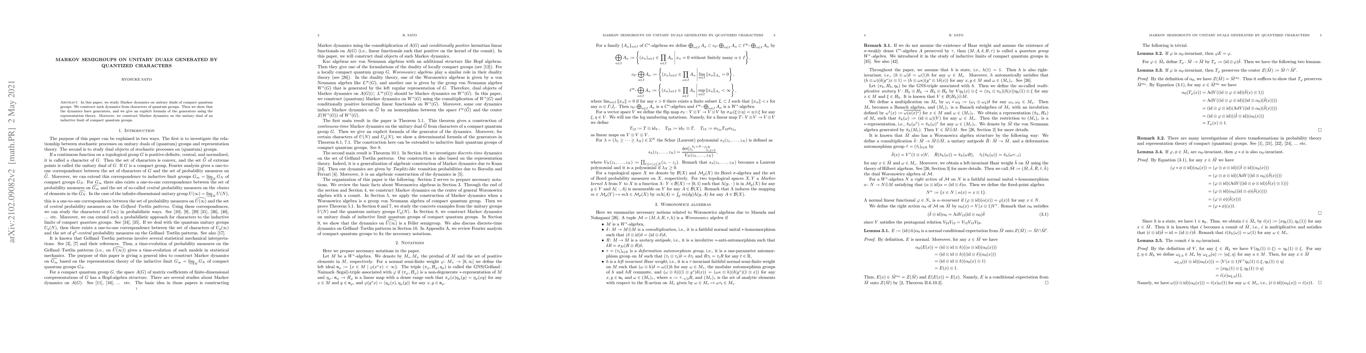 This paper constructs Markov dynamics on the unitary duals of compact quantum groups using quantized characters, demonstrates that these dynamics possess generators, and provides an explicit formula for these generators through representation theory. Additionally, it extends the construction to Markov dynamics on the unitary dual of an inductive limit of compact quantum groups.