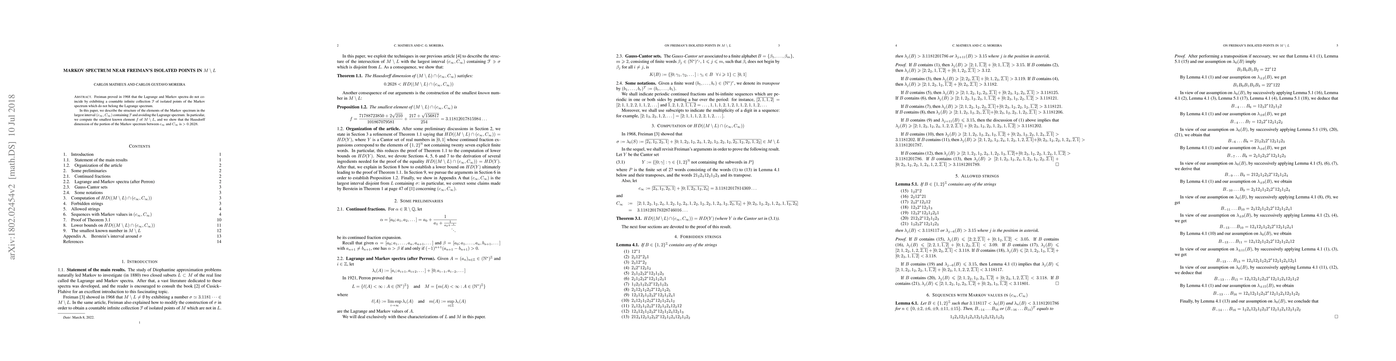 Freiman proved in 1968 that the Lagrange and Markov spectra do not coincide by exhibiting a countable infinite collection $\mathcal{F}$ of isolated points of the Markov spectrum which do not belong the Lagrange spectrum. In this paper, we describe the structure of the elements of the Markov spectrum in the largest interval $(c_{\infty}, C_{\infty})$ containing $\mathcal{F}$ and avoiding the Lagrange spectrum. In particular, we compute the smallest known element $f$ of $M\setminus L$, and we show that the Hausdorff dimension of the portion of the Markov spectrum between $c_{\infty}$ and $C_{\infty}$ is $> 0.2628$.
