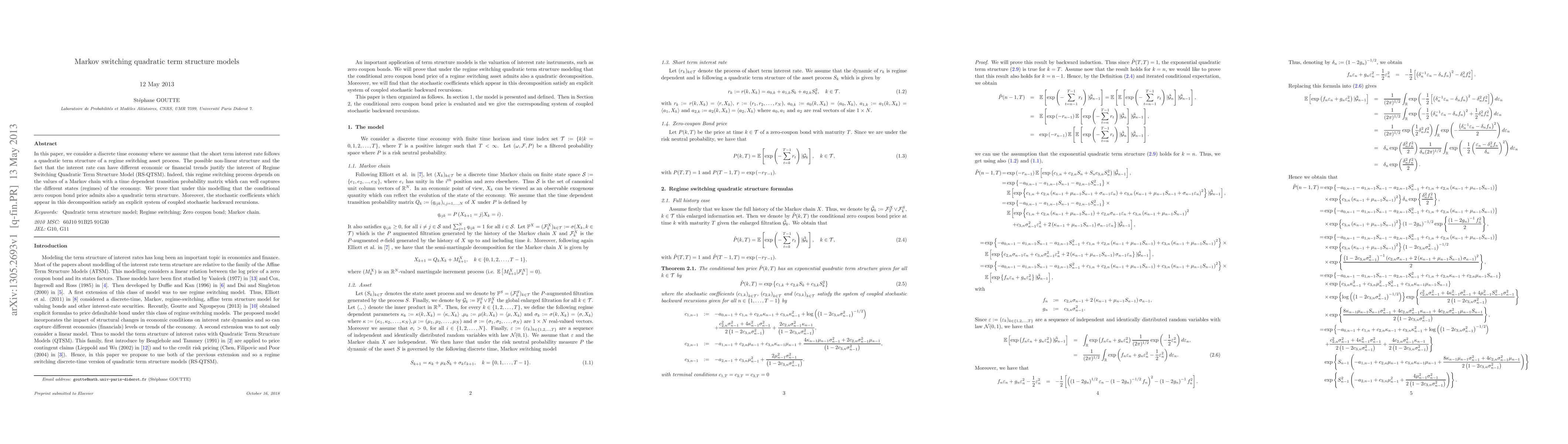 This paper proposes a new financial model that combines regime-switching with a quadratic term structure to capture complex economic trends. It shows that the conditional zero-coupon bond price also exhibits a quadratic term structure, with stochastic coefficients that satisfy explicit recursive equations.