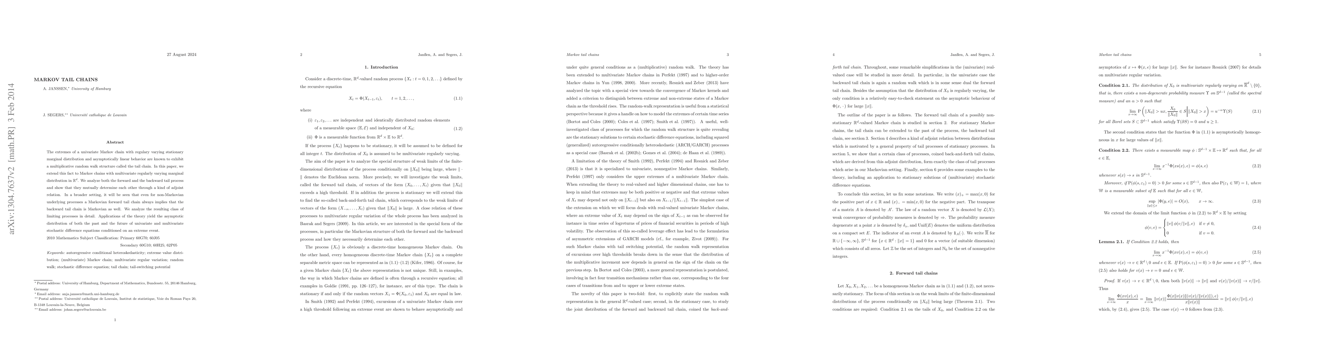 This paper extends the concept of tail chains to multivariate Markov chains with regularly varying marginal distributions, analyzing both forward and backward tail processes. It establishes an adjoint relation between them and shows that Markovian forward tail chains imply Markovian backward tail chains even for non-Markovian processes.