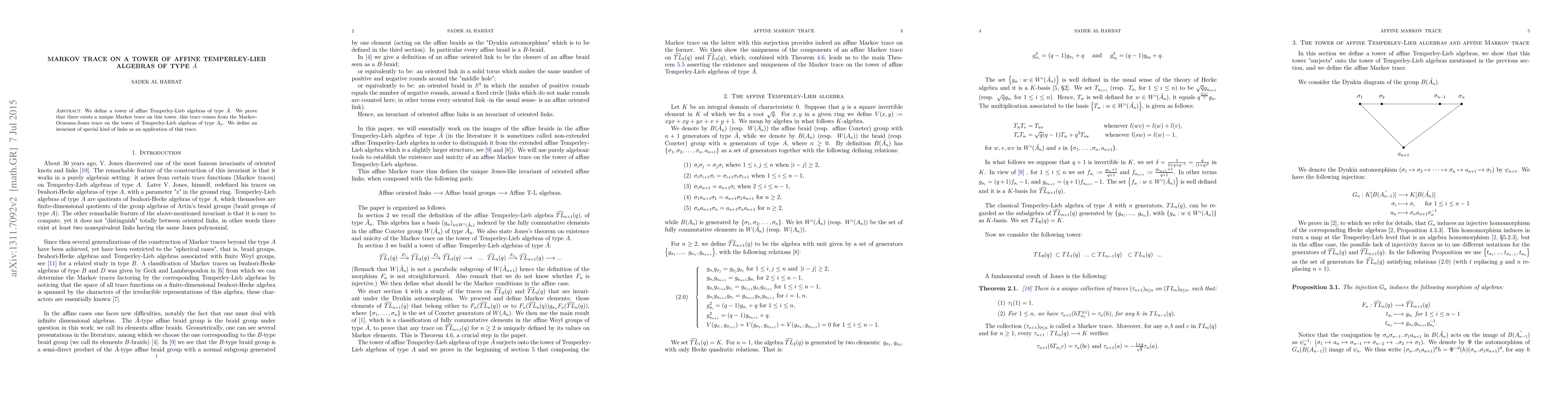Summary: This paper constructs a tower of affine Temperley-Lieb algebras of type $\tilde{A_{n}}$ and proves the existence of a unique Markov trace on this tower, which originates from the Markov-Ocneanu-Jones trace on the classical type $A_{n}$ Temperley-Lieb algebras.