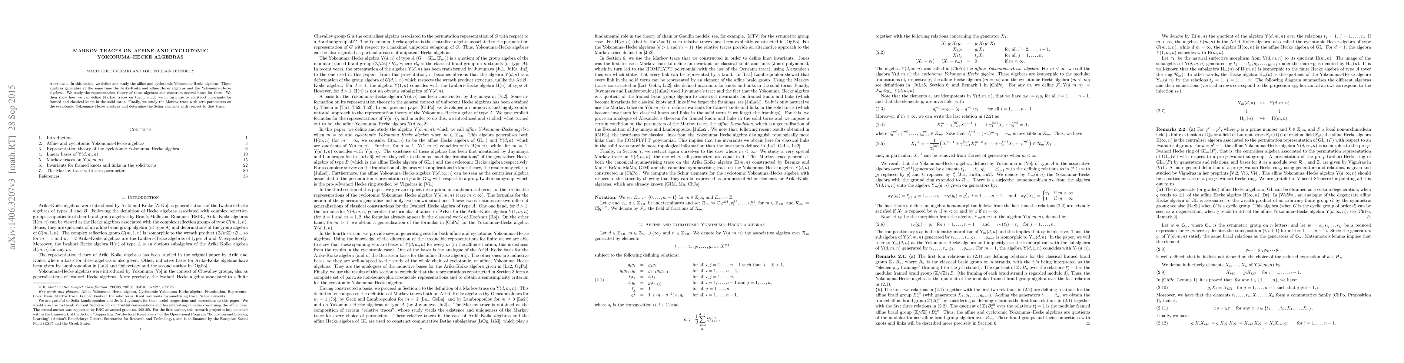 This paper defines and explores the representation theory of affine and cyclotomic Yokonuma-Hecke algebras, constructing several bases and Markov traces. It applies these traces to construct invariants for framed and classical knots, and determines Schur elements related to the zero parameter Markov trace in cyclotomic Yokonuma-Hecke algebras.