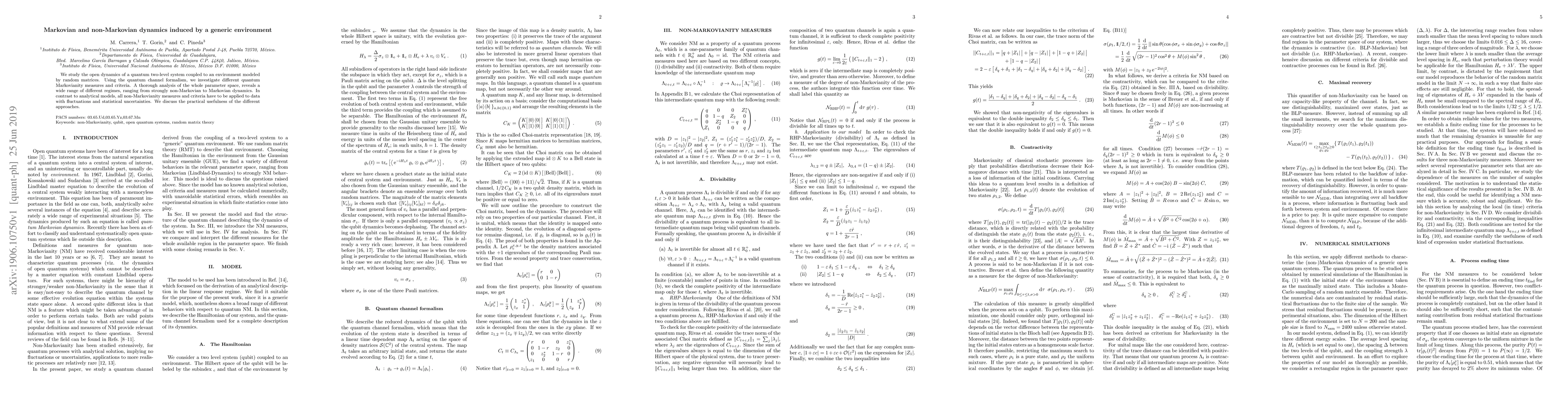We study the open dynamics of a quantum two-level system coupled to an environment modeled by random matrices. Using the quantum channel formalism, we investigate different quantum Markovianity measures and criteria. A thorough analysis of the whole parameter space, reveals a wide range of different regimes, ranging from strongly non-Markovian to Markovian dynamics. In contrast to analytical models, all non-Markovianity measures and criteria have to be applied to data with fluctuations and statistical uncertainties. We discuss the practical usefulness of the different approaches.