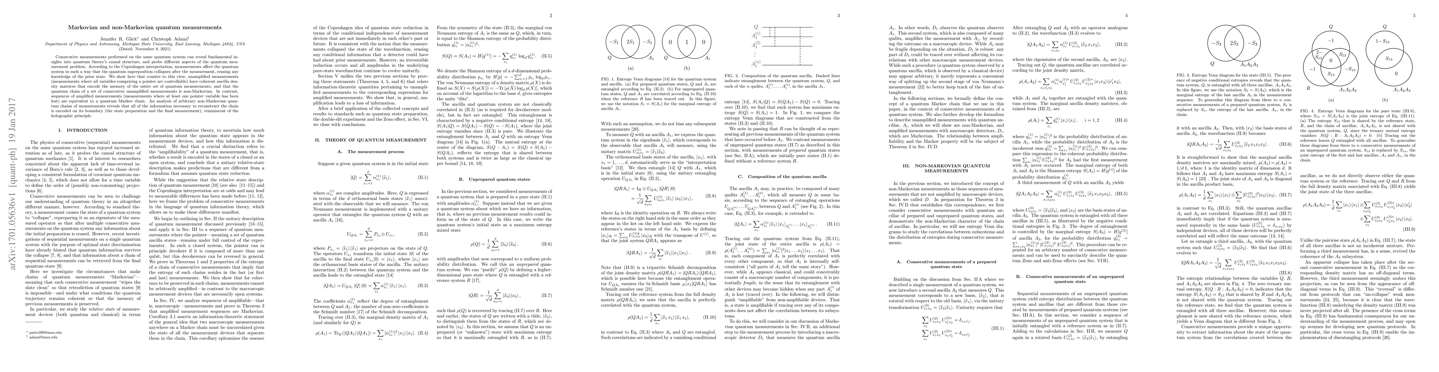 Consecutive measurements performed on the same quantum system can reveal fundamental insights into quantum theory's causal structure, and probe different aspects of the quantum measurement problem. According to the Copenhagen interpretation, measurements affect the quantum system in such a way that the quantum superposition collapses after the measurement, erasing any knowledge of the prior state. We show here that counter to this view, unamplified measurements (measurements where all variables comprising a pointer are controllable) have coherent ancilla density matrices that encode the memory of the entire set of quantum measurements, and that the quantum chain of a set of consecutive unamplified measurements is non-Markovian. In contrast, sequences of amplified measurements (measurements where at least one pointer variable has been lost) are equivalent to a quantum Markov chain. An analysis of arbitrary non-Markovian quantum chains of measurements reveals that all of the information necessary to reconstruct the chain is encoded on its boundary (the state preparation and the final measurement), reminiscent of the holographic principle.