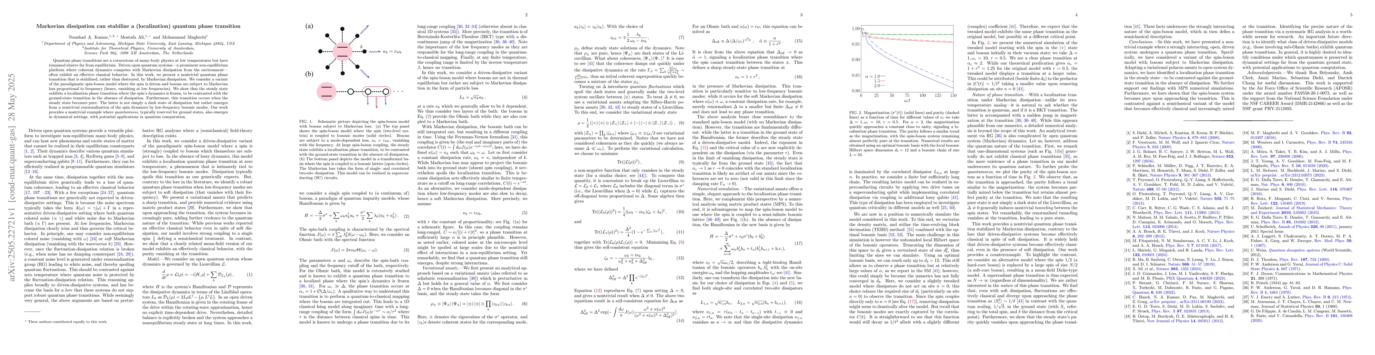 The paper presents a detailed theoretical analysis showing how Markovian dissipation can stabilize a localization quantum phase transition in a driven spin-boson model, highlighting the interplay between coherent dynamics and dissipation.