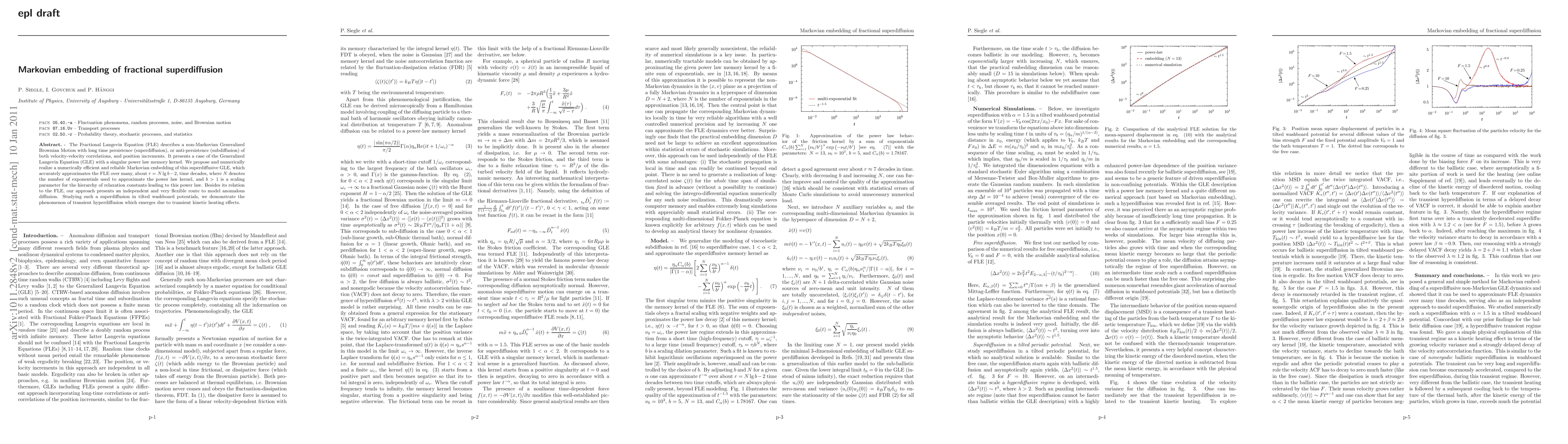 Researchers propose a new method to model superdiffusion, a type of anomalous diffusion that exhibits long time persistence, using a Markovian embedding of the Fractional Langevin Equation.