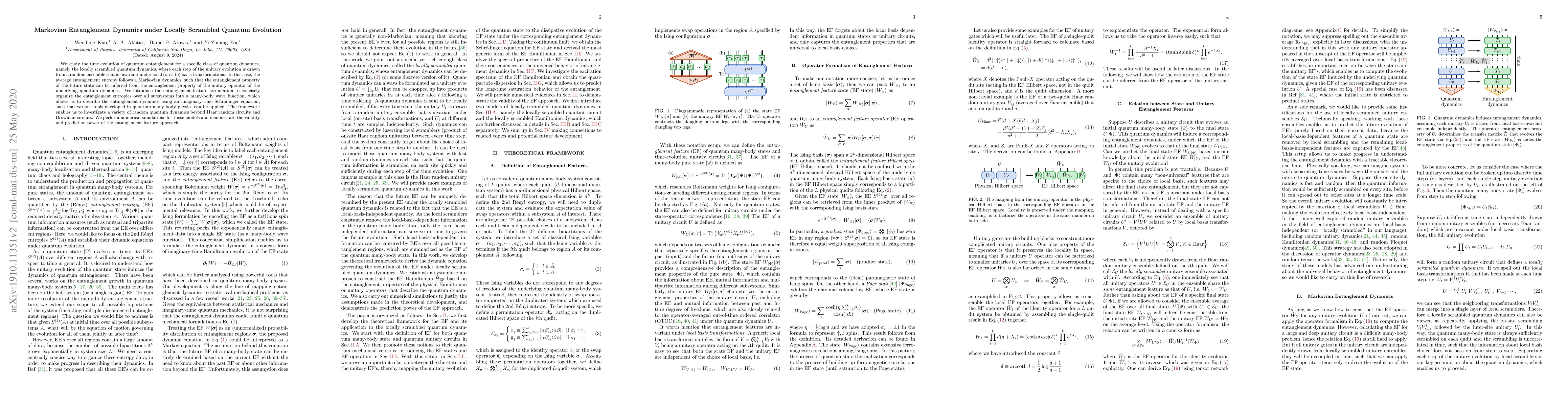 This paper investigates the Markovian dynamics of quantum entanglement under locally scrambled quantum evolution, where each unitary step is randomly chosen from an invariant ensemble. It introduces the entanglement feature formulation to describe entanglement dynamics using an imaginary-time Schrödinger equation, enabling the application of quantum many-body physics tools and demonstrating the approach's validity through numerical simulations.