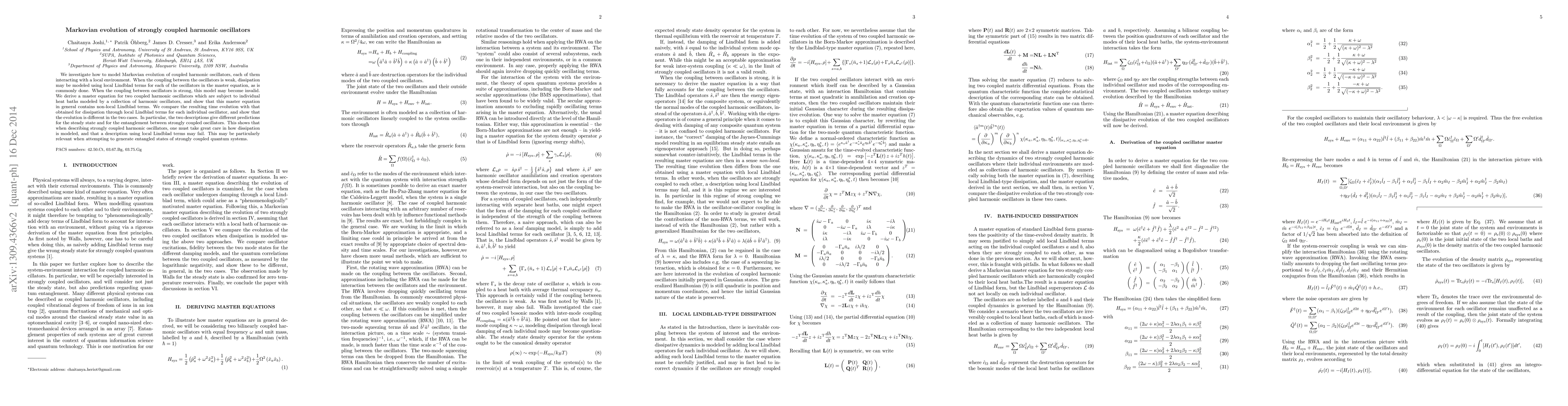 This paper derives a master equation for strongly coupled harmonic oscillators interacting with local environments, showing that non-local Lindblad terms arise when coupling is strong. It highlights that local Lindblad terms may fail to accurately describe the dynamics, leading to different predictions for steady states and entanglement.