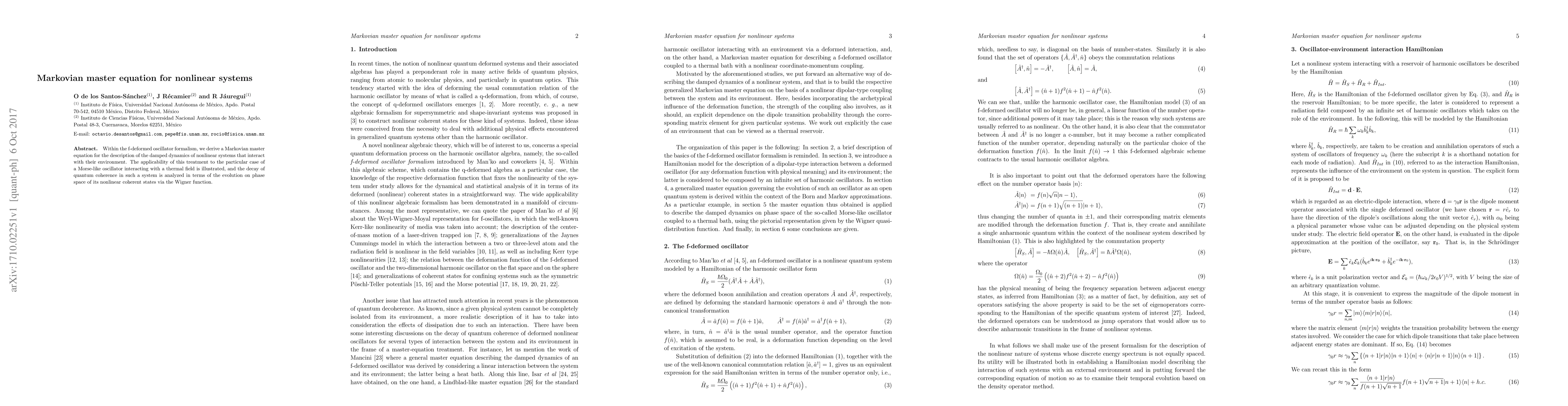 Researchers developed a new mathematical framework to describe the behavior of nonlinear systems that interact with their environment, which can help analyze quantum coherence in such systems. The framework, called the Markovian master equation, provides a way to study the decay of quantum coherence through phase space evolution.