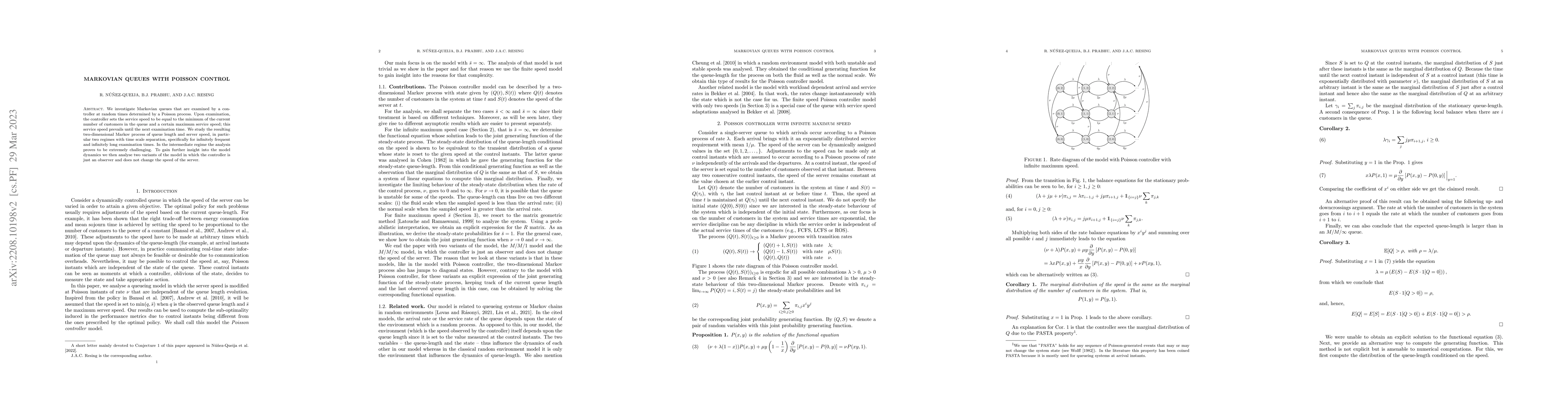 This paper examines Markovian queues controlled by a Poisson process where the service speed is adjusted based on the queue length. The study focuses on two-dimensional Markov processes under different examination frequencies, with particular attention to time scale separation regimes and challenges in the intermediate regime. The dynamics are further analyzed through observer variants without speed adjustments.