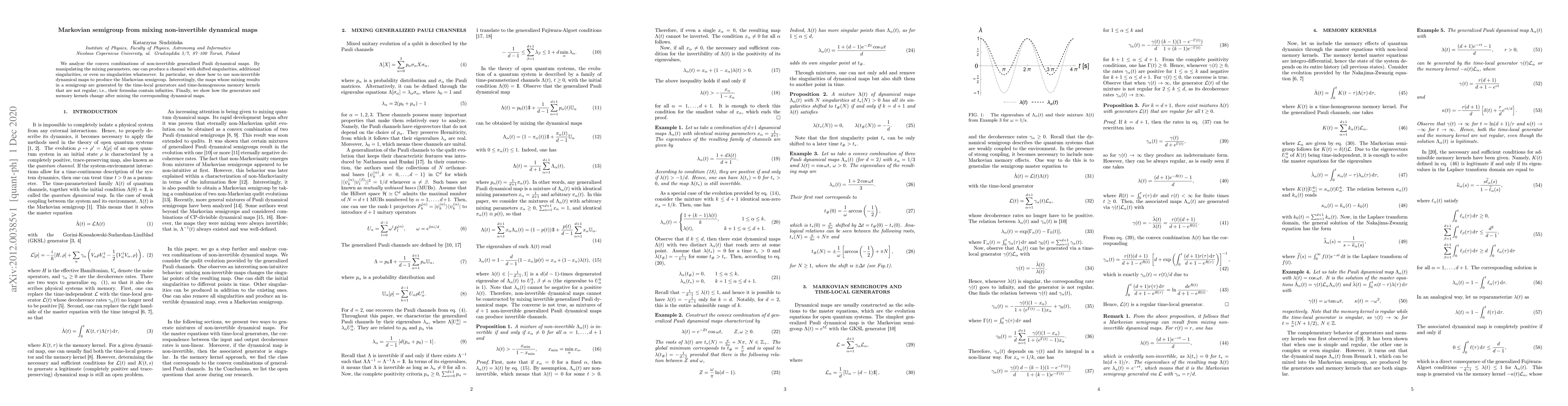 This paper investigates convex combinations of non-invertible generalized Pauli dynamical maps to create Markovian semigroups, revealing that mixing parameters can shift or introduce singularities. It demonstrates the generation of such semigroups through time-local generators and non-regular time-homogeneous memory kernels, highlighting changes in these components post-mixing.