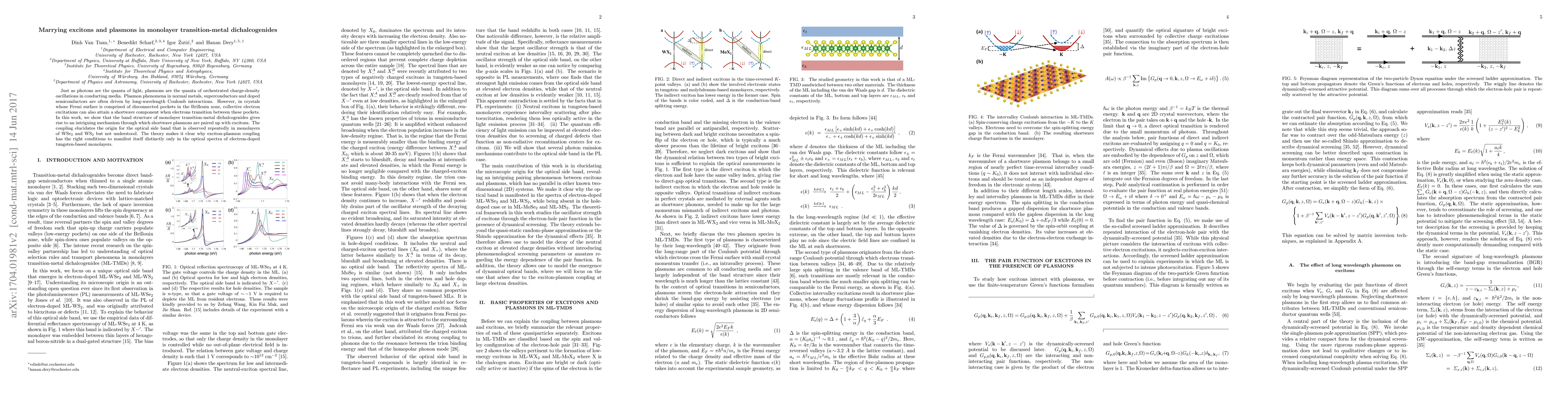 Just as photons are the quanta of light, plasmons are the quanta of orchestrated charge-density oscillations in conducting media. Plasmon phenomena in normal metals, superconductors and doped semiconductors are often driven by long-wavelength Coulomb interactions. However, in crystals whose Fermi surface is comprised of disconnected pockets in the Brillouin zone, collective electron excitations can also attain a shortwave component when electrons transition between these pockets. Here, we show that the band structure of monolayer transition-metal dichalcogenides gives rise to an intriguing mechanism through which shortwave plasmons are paired up with excitons. The coupling elucidates the origin for the optical side band that is observed repeatedly in monolayers of WSe$_2$ and WS$_2$ but not understood. The theory makes it clear why exciton-plasmon coupling has the right conditions to manifest itself distinctly only in the optical spectra of electron-doped tungsten-based monolayers.