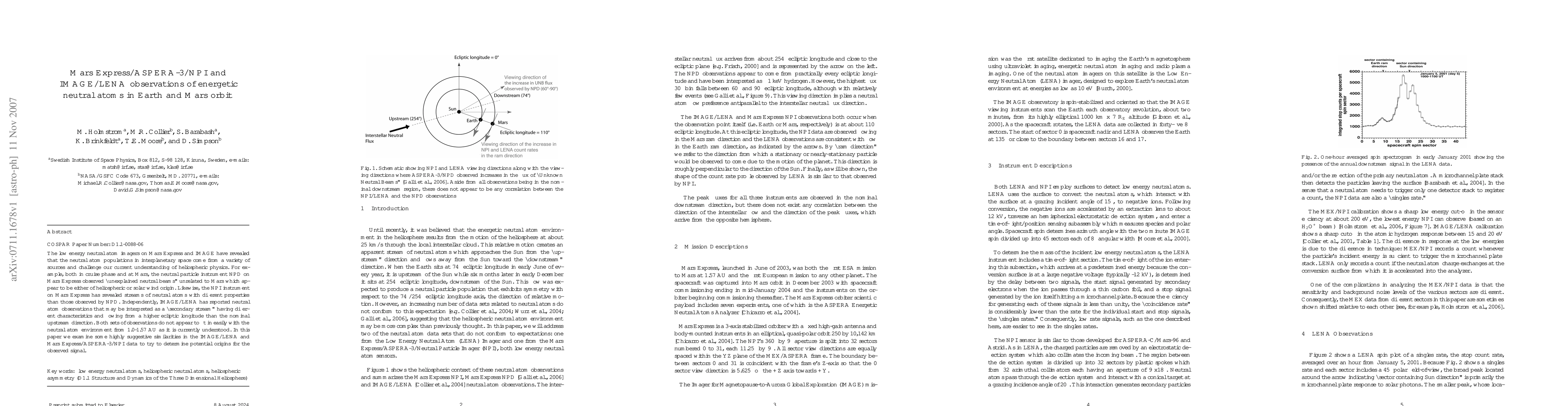 This paper investigates energetic neutral atom observations from Mars Express/ASPERA-3/NPI and IMAGE/LENA, revealing complex neutral atom populations in interplanetary space that challenge current heliospheric physics models. The study highlights unexplained neutral beams and secondary streams, suggesting diverse origins and new insights into the neutral atom environment.