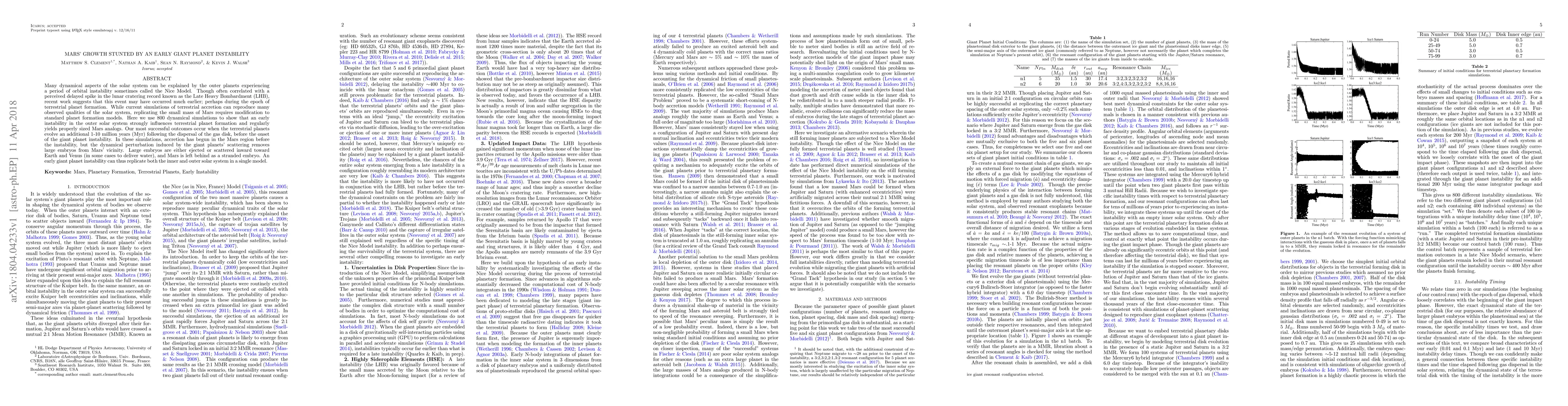 This research demonstrates that an early giant planet instability in the solar system can explain Mars' stunted growth, showing that simulations with such an instability produce Mars analogs of the correct size. The instability scatters large embryos away from Mars, leaving it as a smaller planet, which aligns with observed characteristics of the solar system.