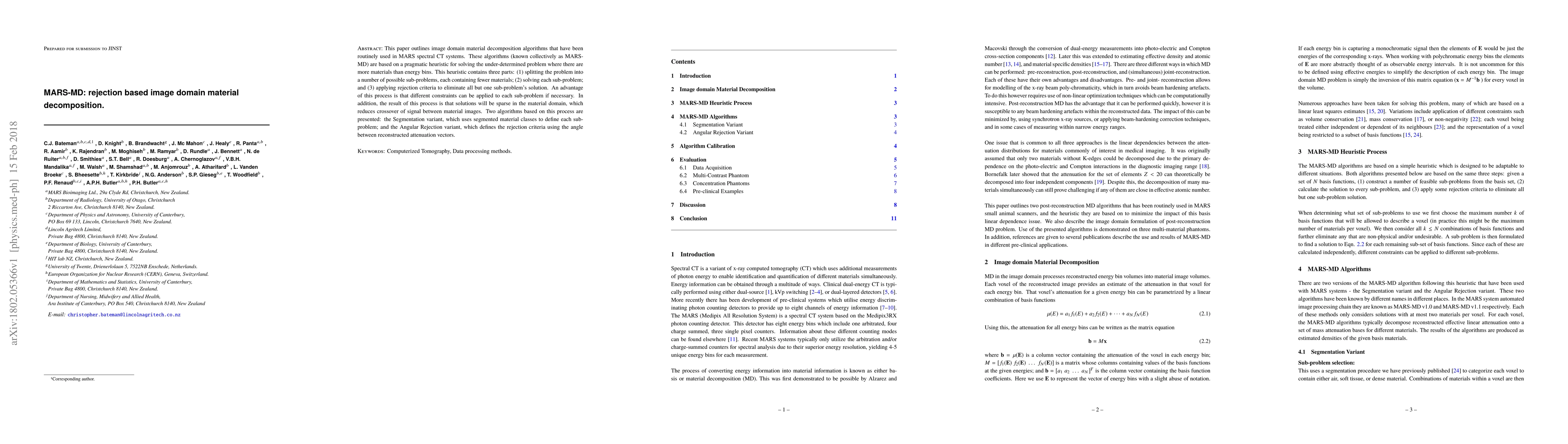 Researchers developed algorithms to decompose images into materials in MARS spectral CT systems, reducing signal crossover between material images. Their rejection-based image domain material decomposition method improves solution sparsity and flexibility.
