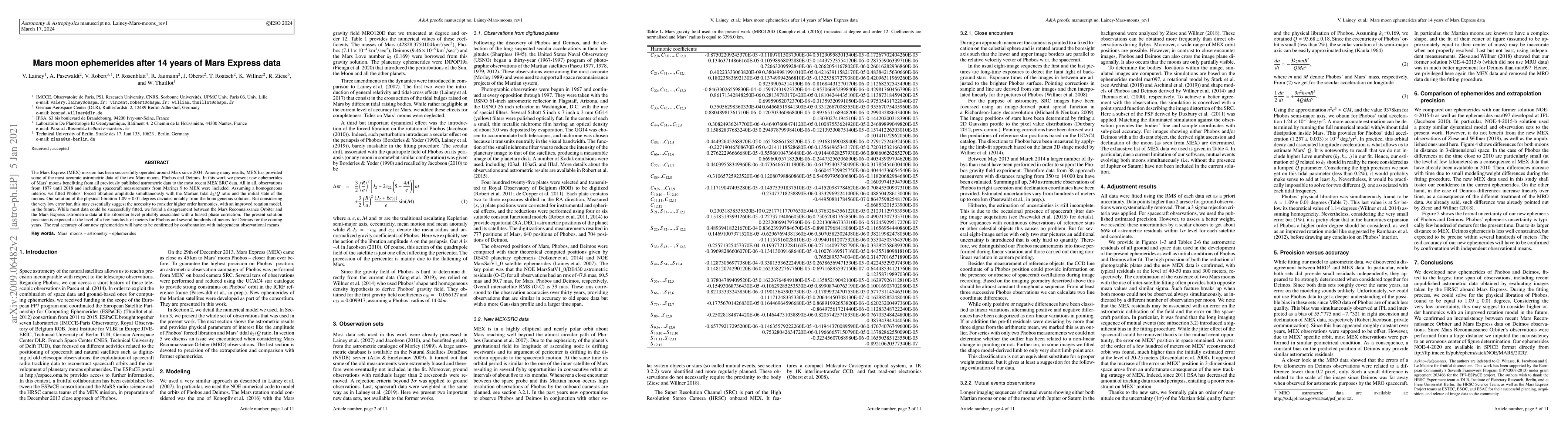 This paper presents refined ephemerides for Mars' moons Phobos and Deimos, leveraging 14 years of Mars Express data and historical observations from 1877 to 2018. The new ephemerides show improved precision, with expected accuracy at the level of a few hundred meters for the coming years, though discrepancies between Mars Express and Mars Reconnaissance Orbiter data suggest potential biases.