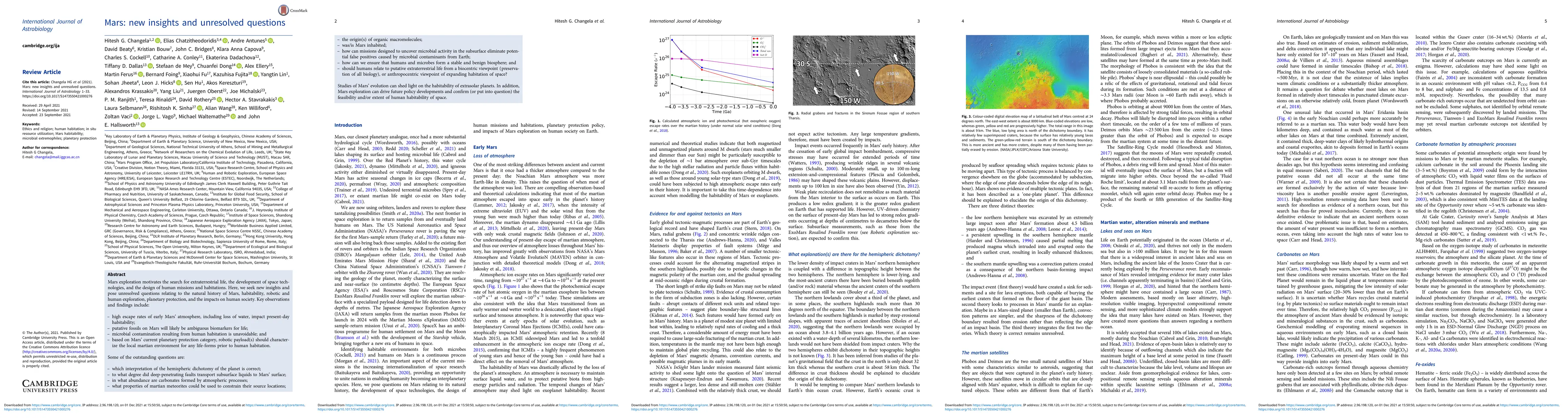 Mars exploration motivates the search for extraterrestrial life, the development of space technologies, and the design of human missions and habitations. Here we seek new insights and pose unresolved questions relating to the natural history of Mars, habitability, robotic and human exploration, planetary protection, and the impacts on human society. Key observations and findings include:(1)high escape rates of early Mars' atmosphere, including loss of water, impact present-day habitability;(2)putative fossils on Mars will likely be ambiguous biomarkers for life;(3)microbial contamination resulting from human habitation is unavoidable;(4)based on Mars' current planetary protection category, robotic payload(s) should characterize the local martian environment for any life-forms prior to human habitation. Some of the outstanding questions are:(1)which interpretation of the hemispheric dichotomy of the planet is correct;(2)to what degree did deep-penetrating faults transport subsurface liquids to Mars' surface;(3)in what abundance are carbonates formed by atmospheric processes;(4)what properties of martian meteorites could be used to constrain their source locations;(5)the origin(s) of organic macromolecules;(6)was/is Mars inhabited;(7)how can missions designed to uncover microbial activity in the subsurface eliminate potential false positives caused by microbial contaminants from Earth;(8)how can we ensure that humans and microbes form a stable and benign biosphere;(9)should humans relate to putative extraterrestrial life from a biocentric viewpoint (preservation of all biology), or anthropocentric viewpoint of expanding habitation of space? Studies of Mars' evolution can shed light on the habitability of extrasolar planets. In addition, Mars exploration can drive future policy developments and confirm (or put into question) the feasibility and/or extent of human habitability of space.