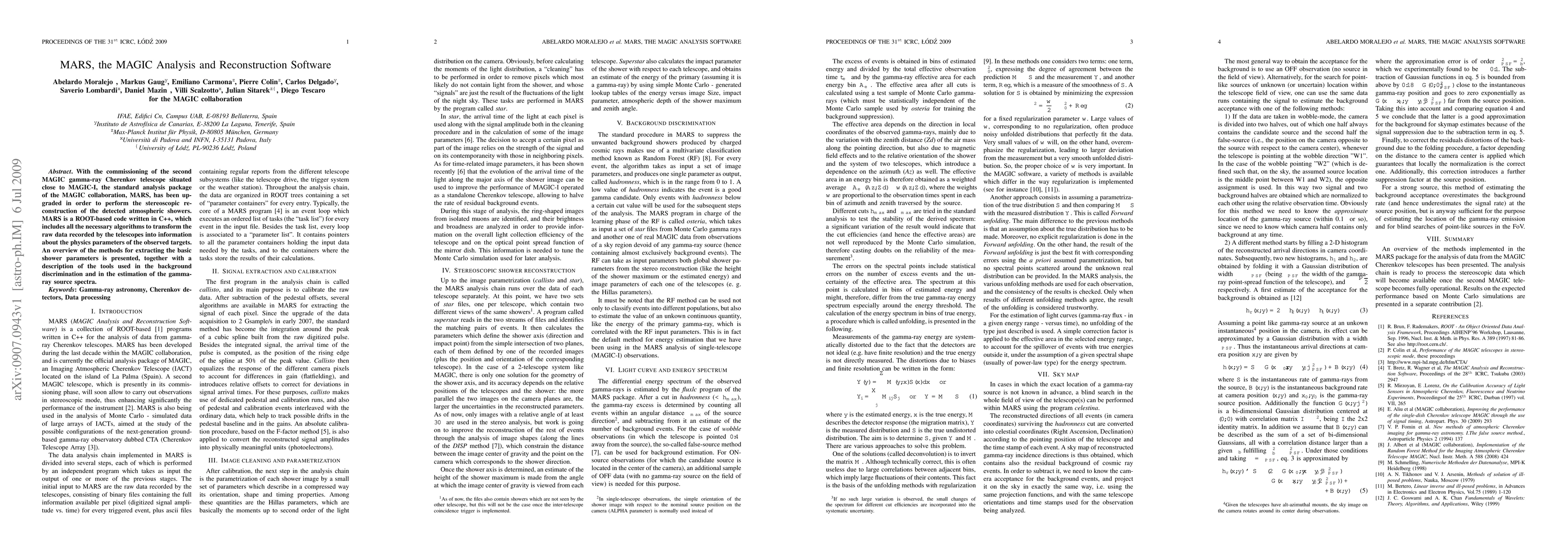 MARS is an upgraded ROOT-based C++ software for the MAGIC gamma-ray Cherenkov telescope collaboration, designed to reconstruct atmospheric showers and analyze gamma-ray sources. It includes algorithms for data transformation, background discrimination, and spectrum estimation.