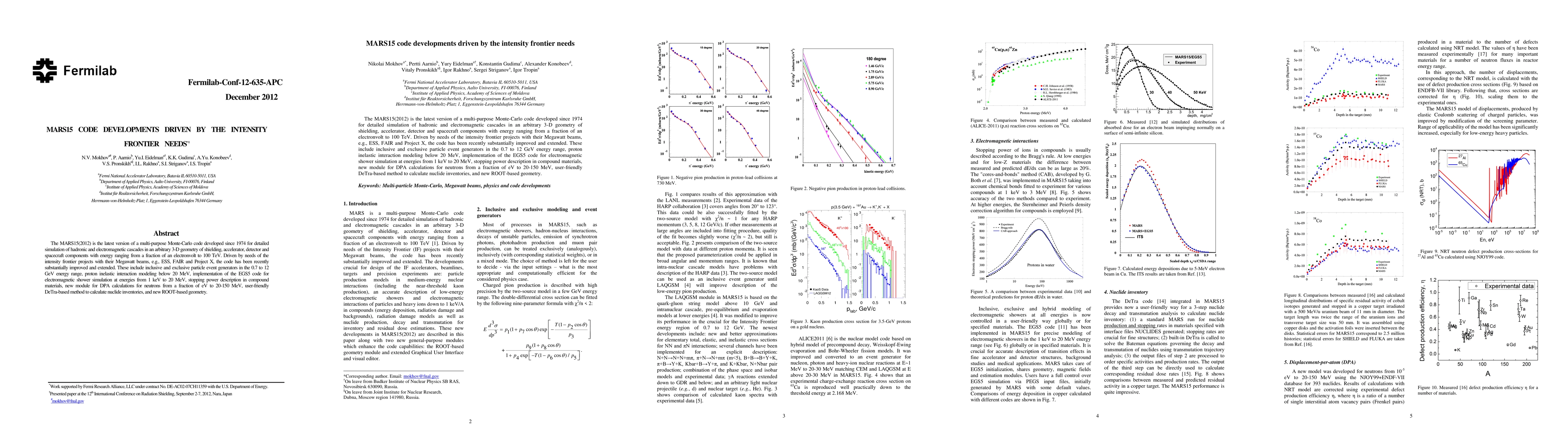 The MARS15(2012) is the latest version of a multi-purpose Monte-Carlo code developed since 1974 for detailed simulation of hadronic and electromagnetic cascades in an arbitrary 3-D geometry of shielding, accelerator, detector and spacecraft components with energy ranging from a fraction of an electronvolt to 100 TeV. Driven by needs of the intensity frontier projects with their Megawatt beams, e.g., ESS, FAIR and Project X, the code has been recently substantially improved and extended. These include inclusive and exclusive particle event generators in the 0.7 to 12 GeV energy range, proton inelastic interaction modeling below 20 MeV, implementation of the EGS5 code for electromagnetic shower simulation at energies from 1 keV to 20 MeV, stopping power description in compound materials, new module for DPA calculations for neutrons from a fraction of eV to 20-150 MeV, user-friendly DeTra-based method to calculate nuclide inventories, and new ROOT-based geometry.
