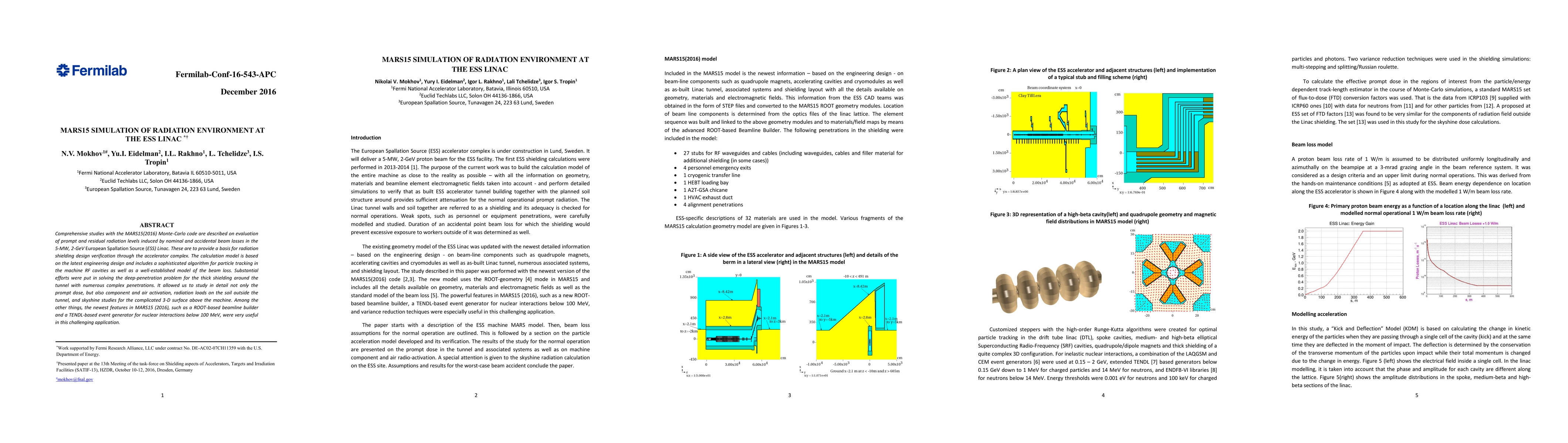 Researchers used a Monte-Carlo simulation model to study radiation levels at the European Spallation Source Linac, analyzing prompt and residual radiation from beam losses to inform radiation shielding design.