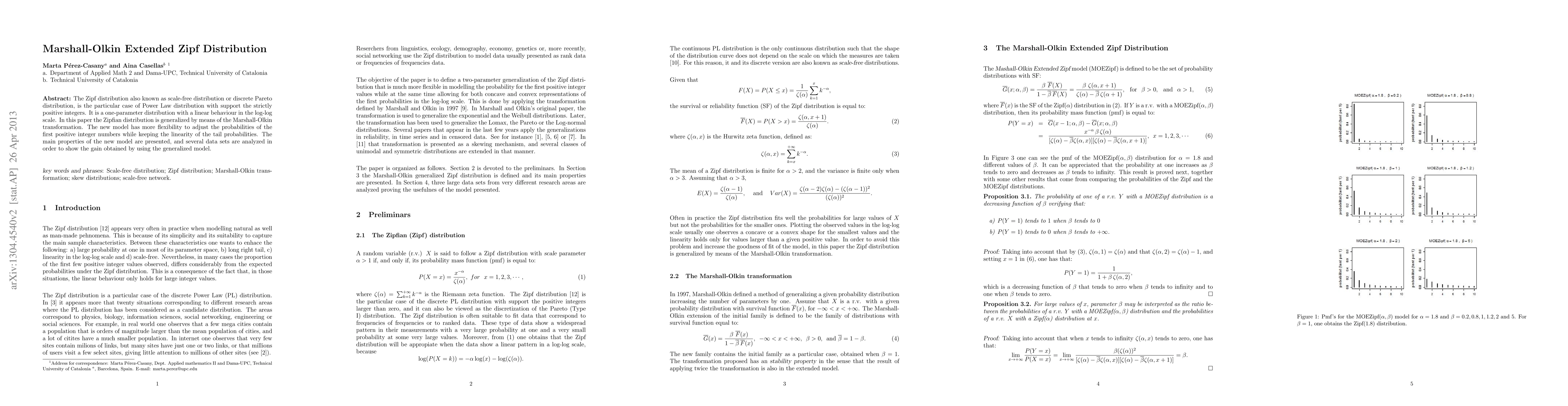 The Zipf distribution also known as scale-free distribution or discrete Pareto distribution, is the particular case of Power Law distribution with support the strictly positive integers. It is a one-parameter distribution with a linear behaviour in the log-log scale. In this paper the Zipf distribution is generalized by means of the Marshall-Olkin transformation. The new model has more flexibility to adjust the probabilities of the first positive integer numbers while keeping the linearity of the tail probabilities. The main properties of the new model are presented, and several data sets are analyzed in order to show the gain obtained by using the generalized model.