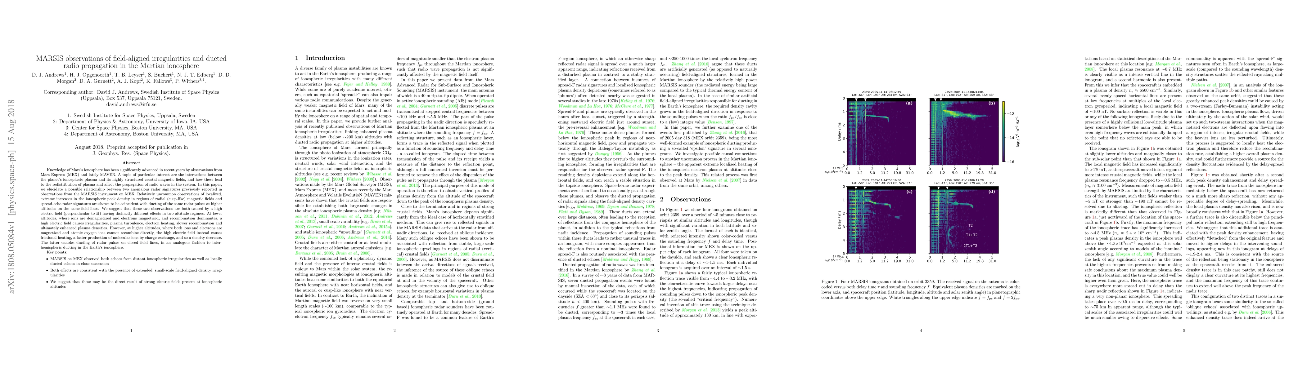 Researchers found that high electric fields in Mars' ionosphere cause density increases at lower altitudes but decreases at higher altitudes, leading to ducted radio propagation.