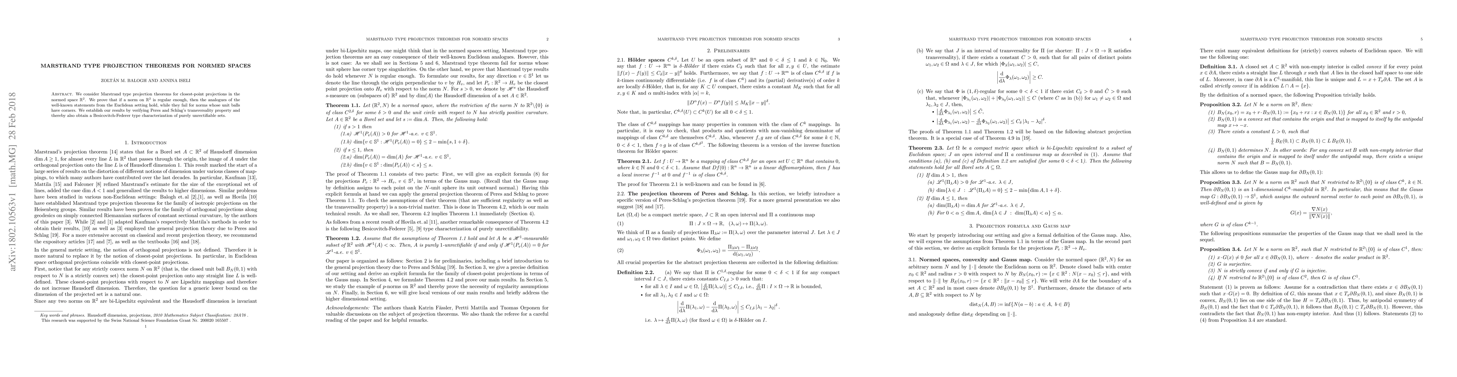 Researchers prove that Marstrand type projection theorems hold for normed spaces with regular unit balls, but fail for those with cornered unit balls, providing insights into set characterization in geometry.