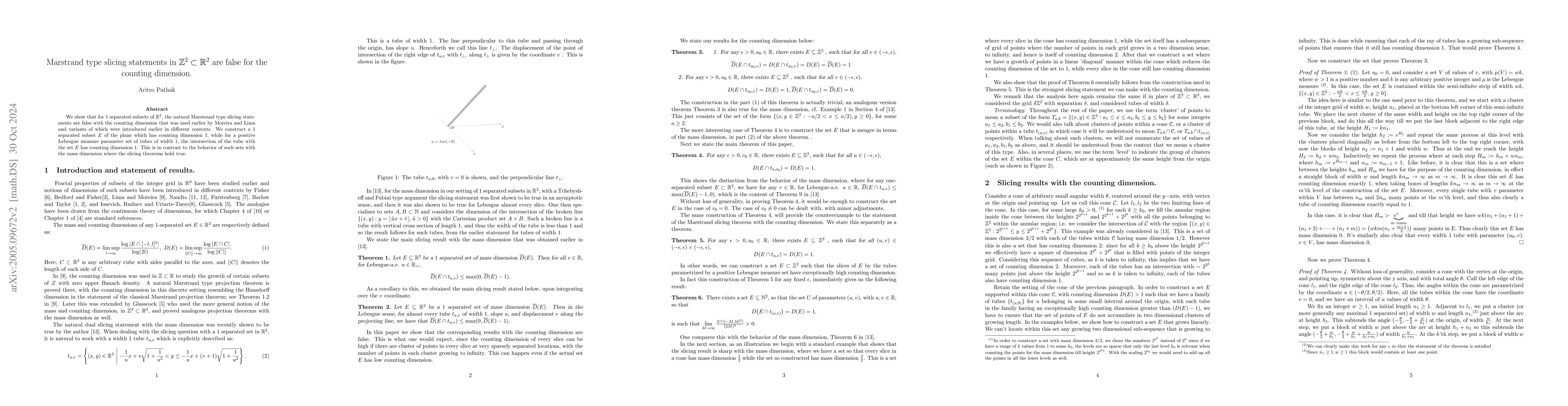 Researchers found that a specific type of set in 2D space has a counting dimension of one despite having a positive Lebesgue measure, contradicting earlier statements about this phenomenon.