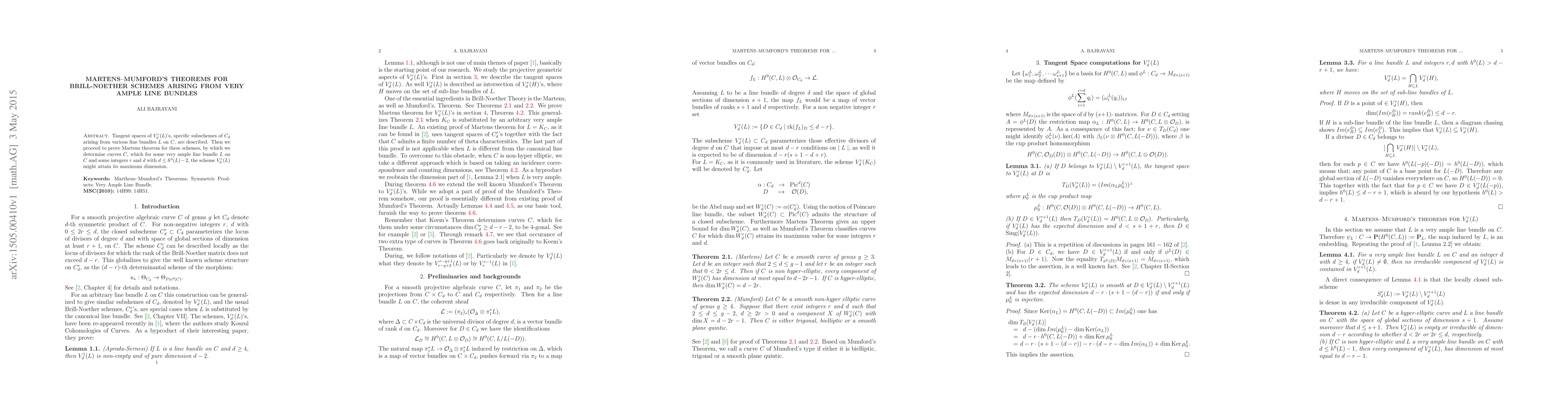Tangent Spaces of V^r_d(L), Specific subschemes of C_d arising from various line bundles on C, are described. Then we proceed to prove Martense Theorem for these schemes, by which we determine curves C, which for some very ample line bundle L on C and some integers r and d with d\leq h^{0}(L)-2, the subscheme V^r_d(L) might attain its maximum dimension.