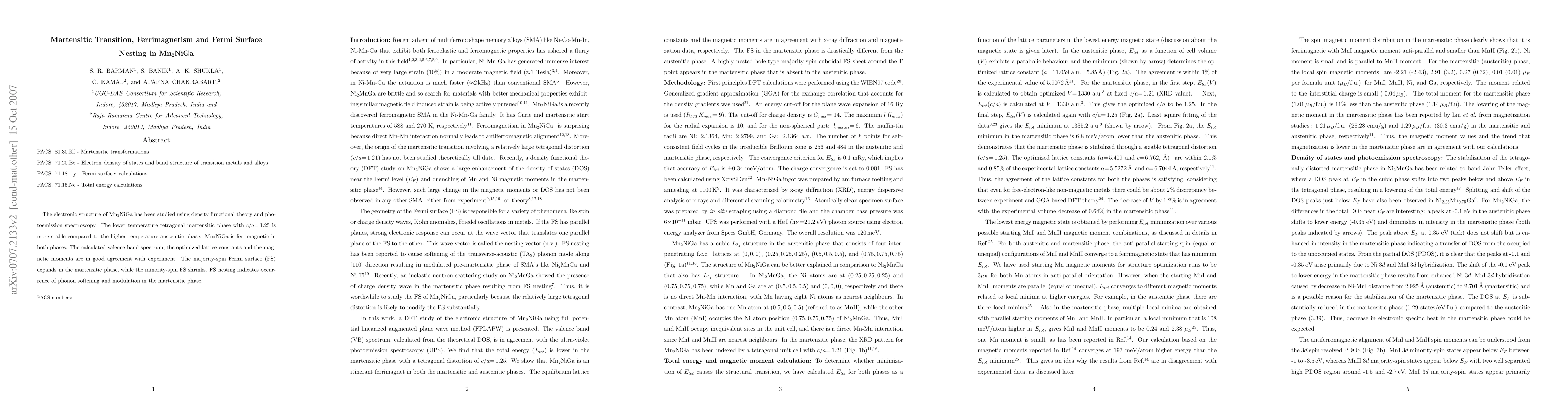 Mn_2NiGa exhibits a martensitic transition at lower temperatures, becoming ferrimagnetic with a modified Fermi surface that shows phonon softening.