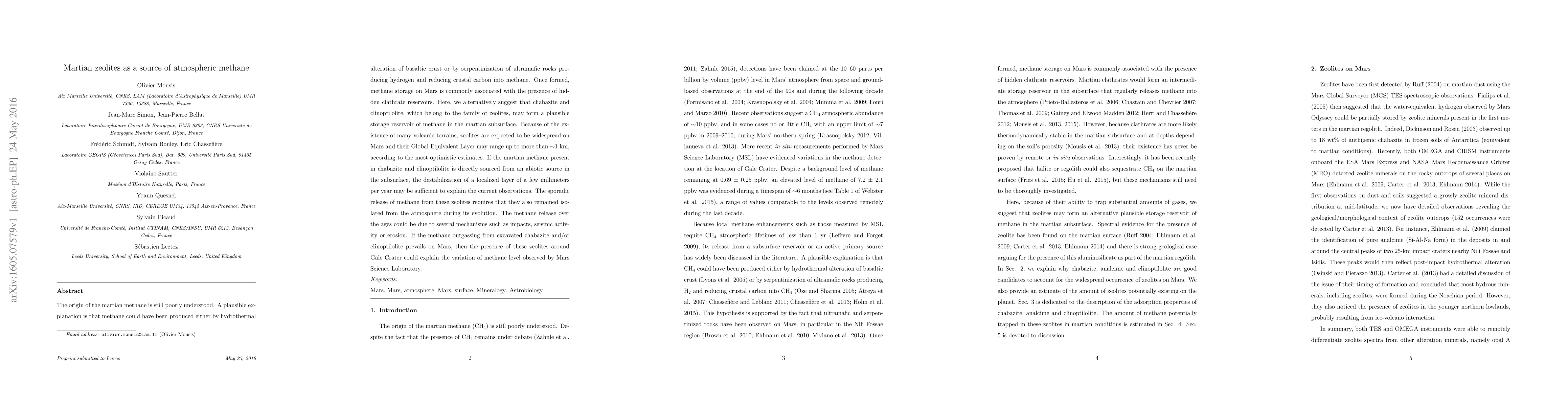 This paper proposes that Martian zeolites, specifically chabazite and clinoptilolite, could serve as a storage reservoir for methane in the martian subsurface. It suggests that sporadic releases of methane from these zeolites could explain the observed methane variations on Mars.
