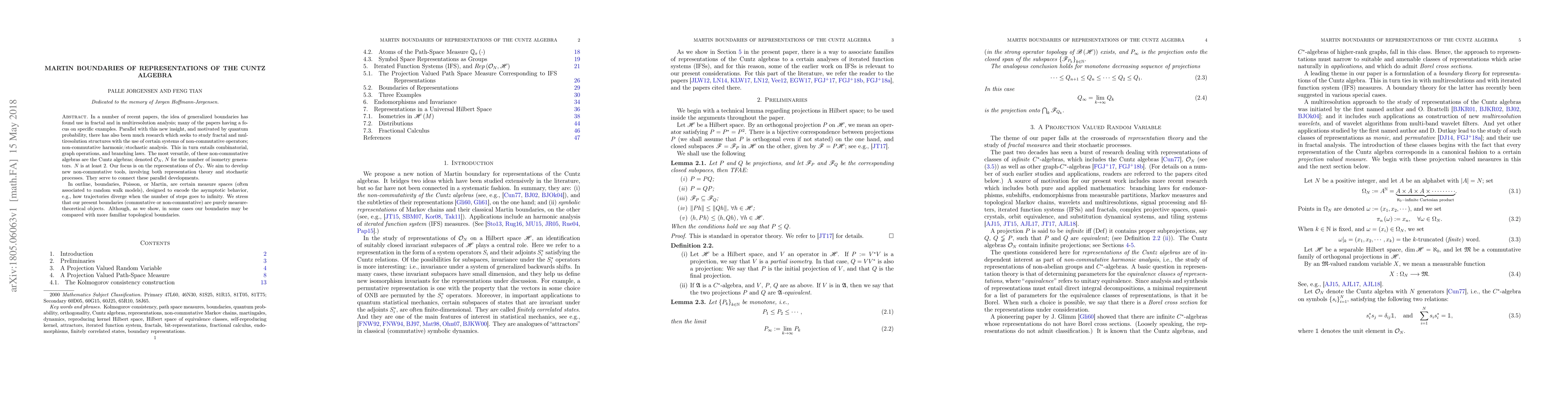 In a number of recent papers, the idea of generalized boundaries has found use in fractal and in multiresolution analysis; many of the papers having a focus on specific examples. Parallel with this new insight, and motivated by quantum probability, there has also been much research which seeks to study fractal and multiresolution structures with the use of certain systems of non-commutative operators; non-commutative harmonic/stochastic analysis. This in turn entails combinatorial, graph operations, and branching laws. The most versatile, of these non-commutative algebras are the Cuntz algebras; denoted $\mathcal{O}_{N}$, $N$ for the number of isometry generators. $N$ is at least 2. Our focus is on the representations of $\mathcal{O}_{N}$. We aim to develop new non-commutative tools, involving both representation theory and stochastic processes. They serve to connect these parallel developments. In outline, boundaries, Poisson, or Martin, are certain measure spaces (often associated to random walk models), designed to encode the asymptotic behavior, e.g., how trajectories diverge when the number of steps goes to infinity. We stress that our present boundaries (commutative or non-commutative) are purely measure-theoretical objects. Although, as we show, in some cases our boundaries may be compared with more familiar topological boundaries.