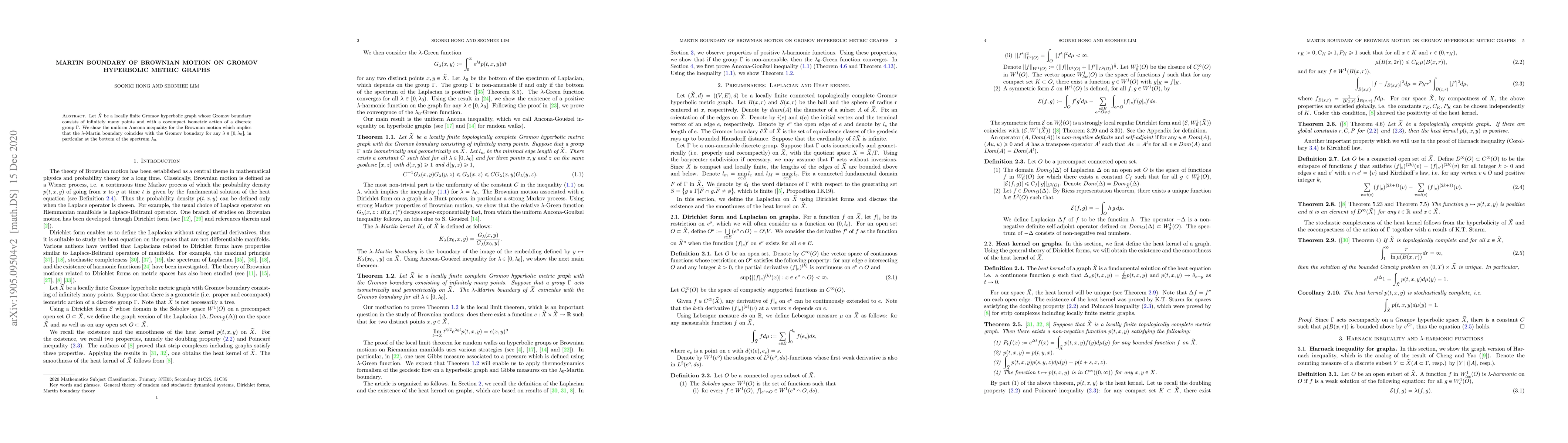 The paper shows that the Martin boundary of Brownian motion on Gromov hyperbolic metric graphs coincides with the geometric boundary for any lambda in a specific range, particularly at the bottom of the spectrum.