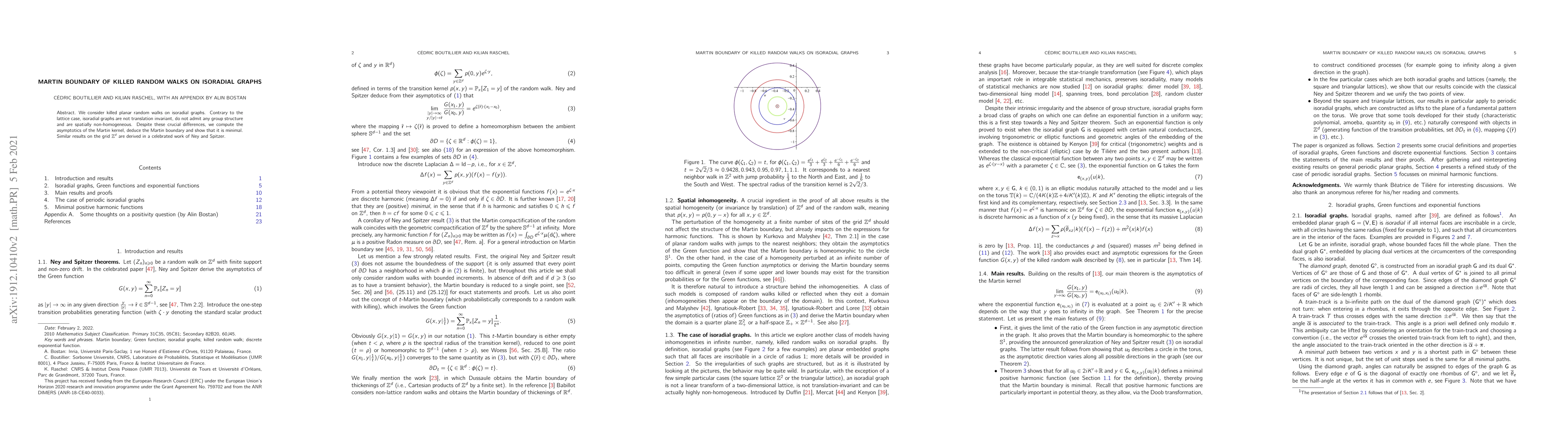 This paper studies killed random walks on isoradial graphs, showing that despite the graph's lack of translation invariance and group structure, the Martin kernel's asymptotics can still be computed, revealing a minimal Martin boundary analogous to the lattice case.