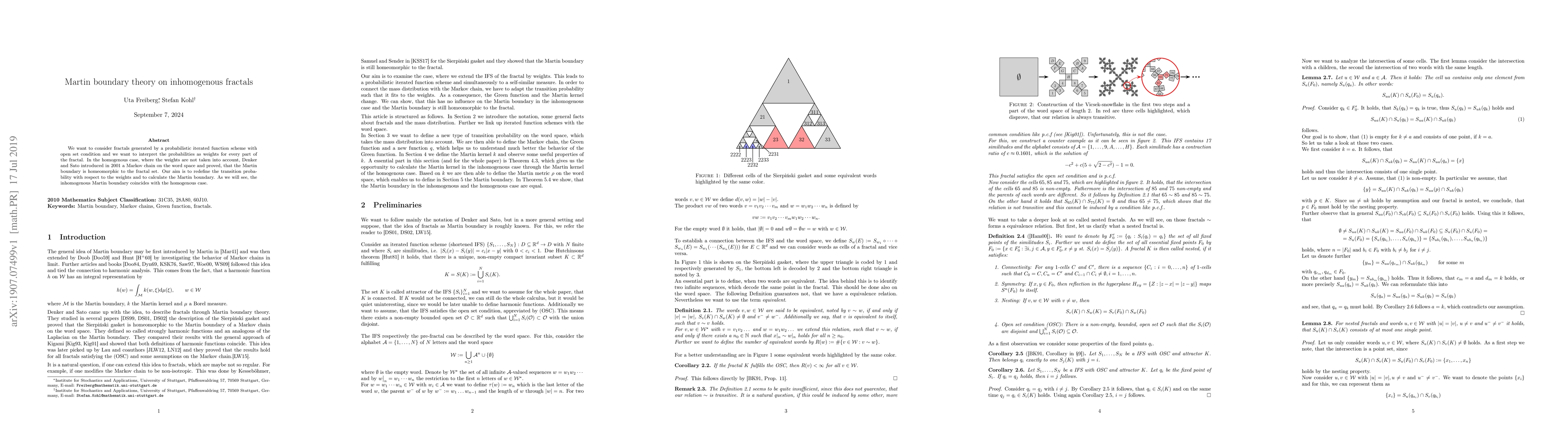 We want to consider fractals generated by a probabilistic iterated function scheme with open set condition and we want to interpret the probabilities as weights for every part of the fractal. In the homogenous case, where the weights are not taken into account, Denker and Sato introduced in 2001 a Markov chain on the word space and proved, that the Martin boundary is homeomorphic to the fractal set. Our aim is to redefine the transition probability with respect to the weights and to calculate the Martin boundary. As we will see, the inhomogenous Martin boundary coincides with the homogenous case.