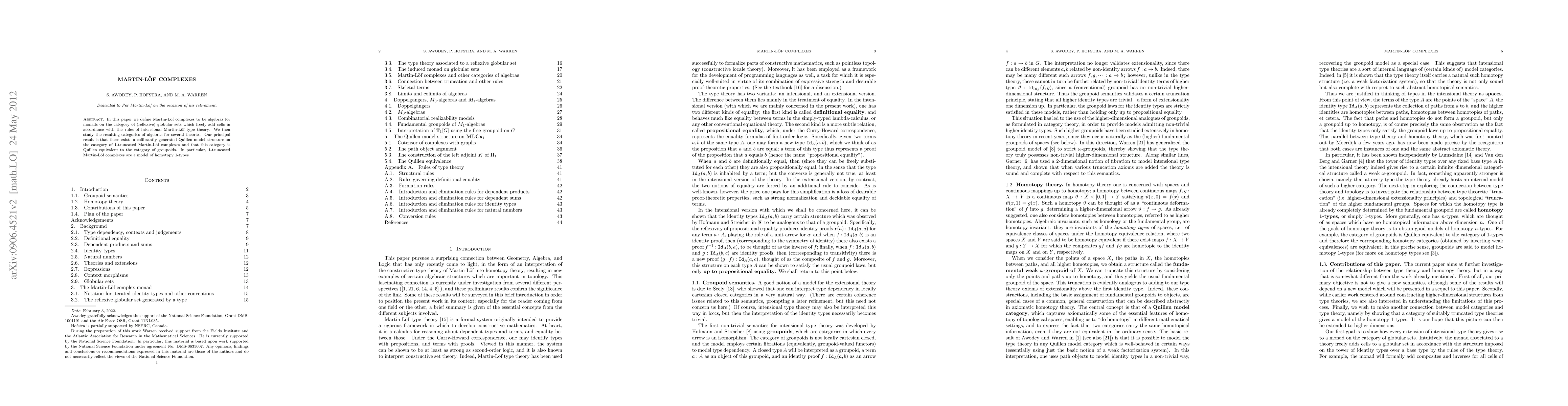 This paper defines Martin-Löf complexes as algebras for monads on reflexive globular sets, aligning with intensional Martin-Löf type theory. It establishes a cofibrantly generated Quillen model structure on 1-truncated Martin-Löf complexes, showing they are Quillen equivalent to the category of groupoids, thus modeling homotopy 1-types.