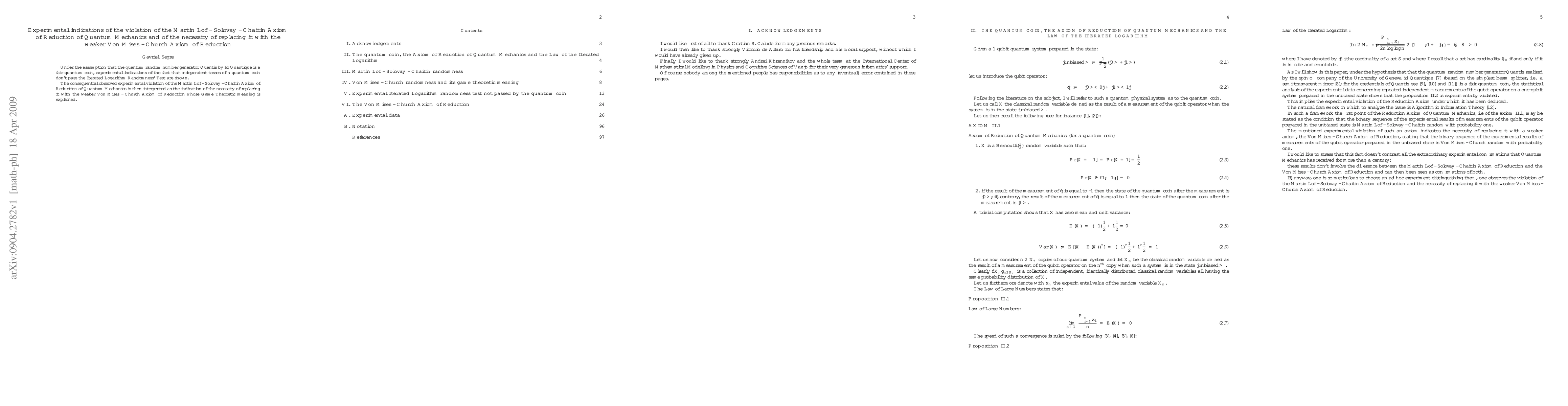 This paper experimentally demonstrates that quantum coin tosses from Quantis by Id Quantique do not pass the Iterated Logarithm Randomness Test, suggesting a violation of the Martin L\"{o}f - Solovay - Chaitin Axiom of Reduction. The authors propose replacing it with the weaker Von Mises - Church Axiom of Reduction, providing a game theoretic interpretation.