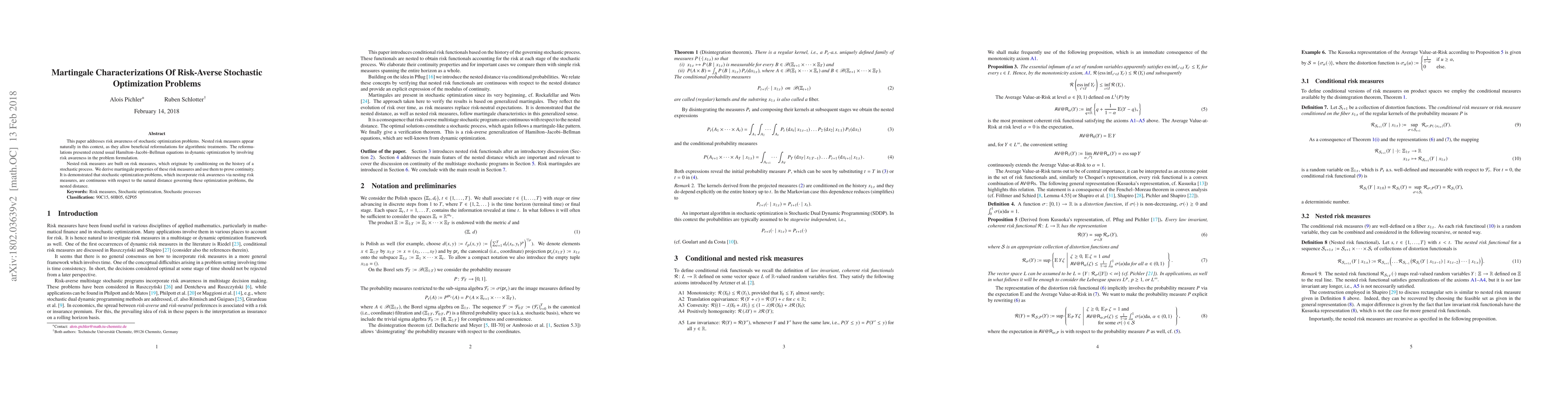 This paper addresses risk awareness of stochastic optimization problems. Nested risk measures appear naturally in this context, as they allow beneficial reformulations for algorithmic treatments. The reformulations presented extend usual Hamilton-Jacobi-Bellman equations in dynamic optimization by involving risk awareness in the problem formulation. Nested risk measures are built on risk measures, which originate by conditioning on the history of a stochastic process. We derive martingale properties of these risk measures and use them to prove continuity. It is demonstrated that stochastic optimization problems, which incorporate risk awareness via nesting risk measures, are continuous with respect to the natural distance governing these optimization problems, the nested distance.