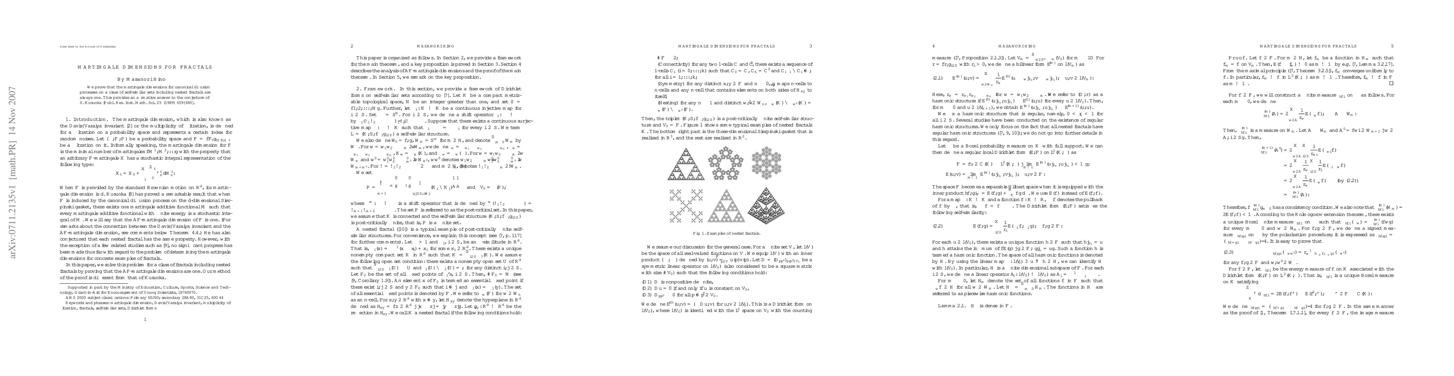 This paper proves that the martingale dimensions for canonical diffusion processes on self-similar sets, such as nested fractals, are consistently one. This result confirms the conjecture proposed by S. Kusuoka in 1989.