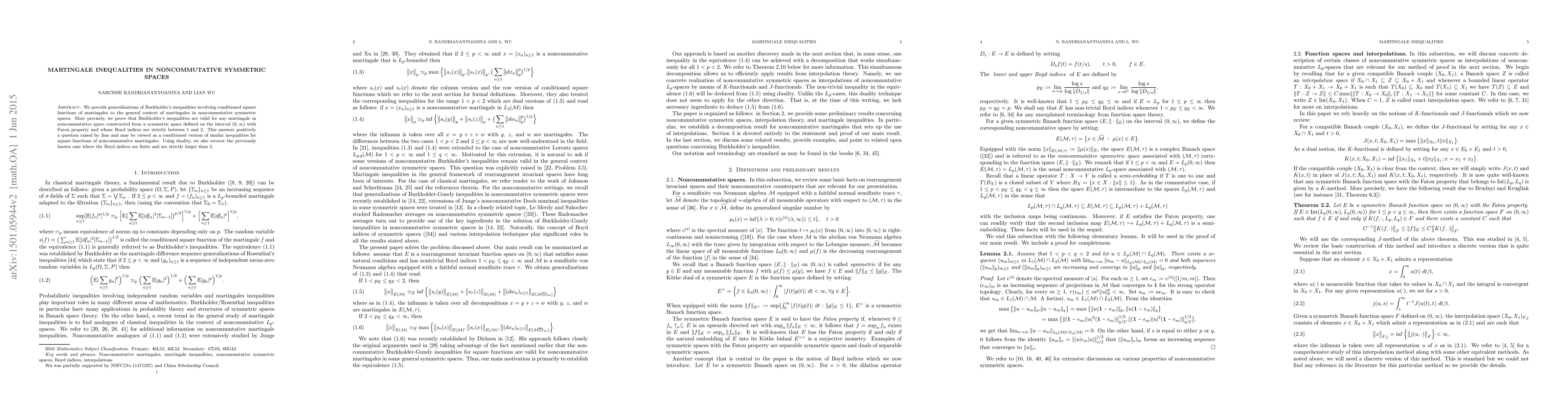 This paper generalizes Burkholder's inequalities to martingales in noncommutative symmetric spaces, proving their validity for martingales in spaces with specific Boyd indices. It answers a question posed by Jiao and extends known inequalities using duality.