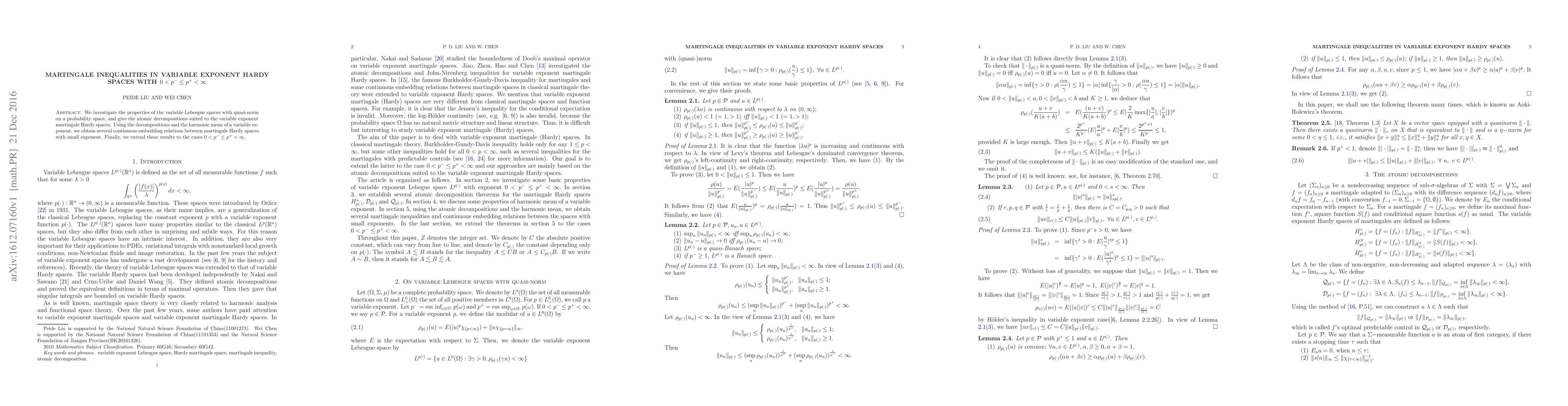 This paper explores the properties of variable Lebesgue spaces on a probability space, providing atomic decompositions for variable exponent martingale Hardy spaces. It establishes continuous embedding relations and extends these findings to variable exponents ranging from $0<p^-\leq p^+<\infty$.