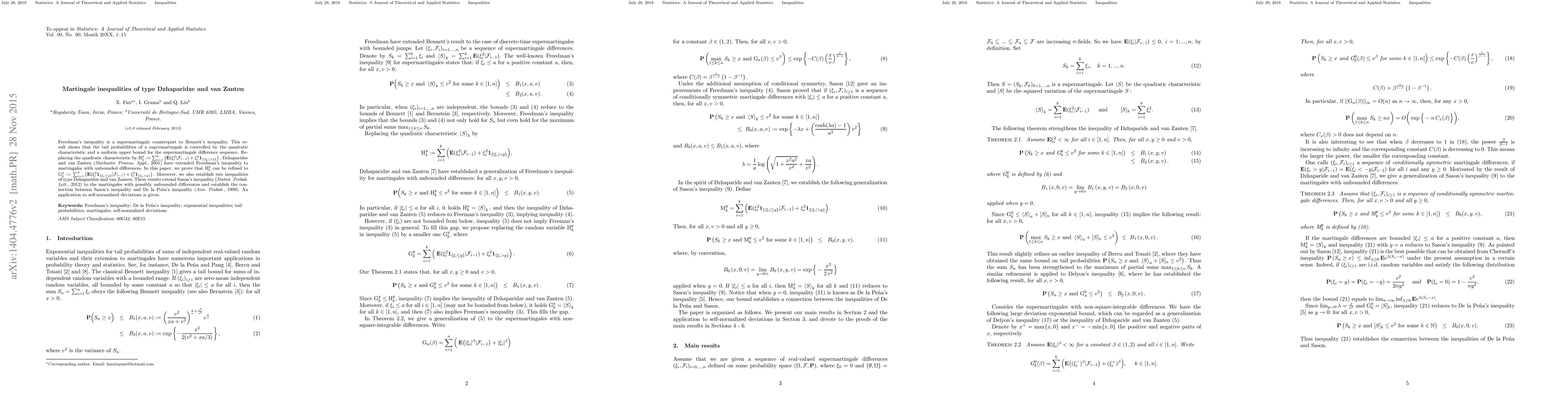 Freedman's inequality is a supermartingale counterpart to Bennett's inequality. This result shows that the tail probabilities of a supermartingale is controlled by the quadratic characteristic and a uniform upper bound for the supermartingale difference sequence. Replacing the quadratic characteristic by $\textrm{H}_k^y:= \sum_{i=1}^k\left(\mathbf{E}(\xi_i^2 |\mathcal{F}_{i-1}) +\xi_i^2\textbf{1}_{\{|\xi_i|> y\}}\right),$ Dzhaparidze and van Zanten (\emph{Stochastic Process. Appl.}, 2001) have extended Freedman's inequality to martingales with unbounded differences. In this paper, we prove that $\textrm{H}_k^y$ can be refined to $\textrm{G}_k^{y} :=\sum_{i=1}^k \left( \mathbf{E}(\xi_i^2\textbf{1}_{\{\xi_i \leq y\}} |\mathcal{F}_{i-1}) + \xi_i^2\textbf{1}_{\{\xi_i> y\}}\right).$ Moreover, we also establish two inequalities of type Dzhaparidze and van Zanten. These results extend Sason's inequality (\emph{Statist. Probab. Lett.}, 2012) to the martingales with possibly unbounded differences and establish the connection between Sason's inequality and De la Pe\~{n}a's inequality (\emph{Ann.\ Probab.,} 1999). An application to self-normalized deviations is given.