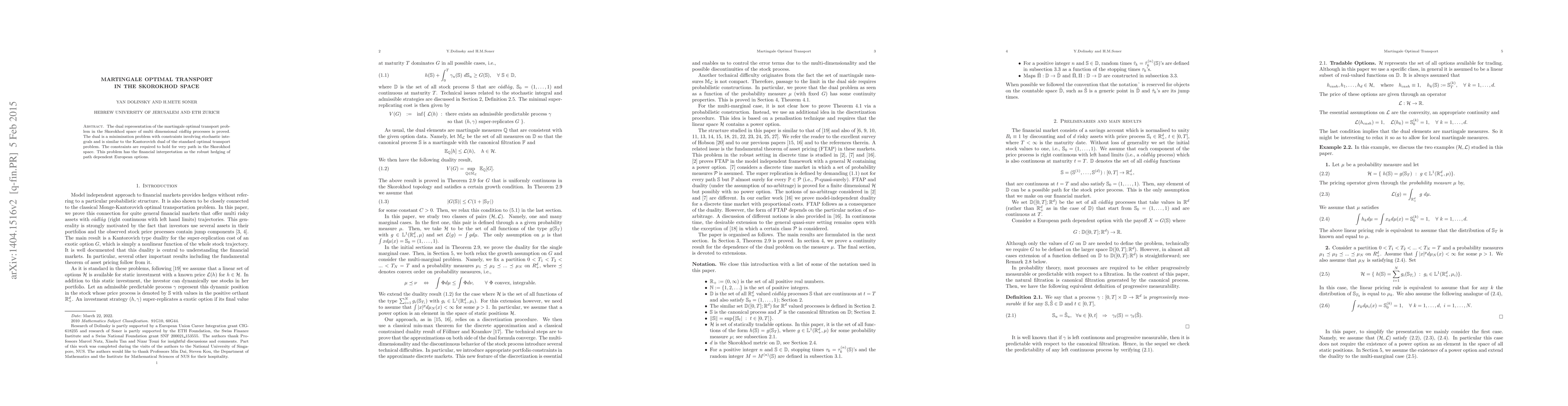 This paper proves the dual representation of the martingale optimal transport problem in the Skorokhod space, involving a minimization problem with stochastic integral constraints. This dual problem extends to the multi-marginal case and has financial implications for robust hedging of path-dependent European options.